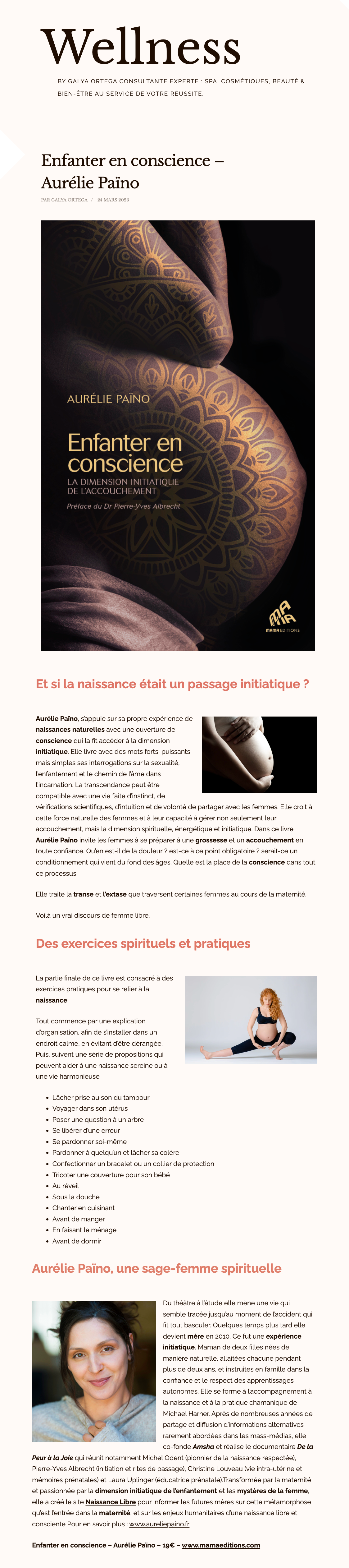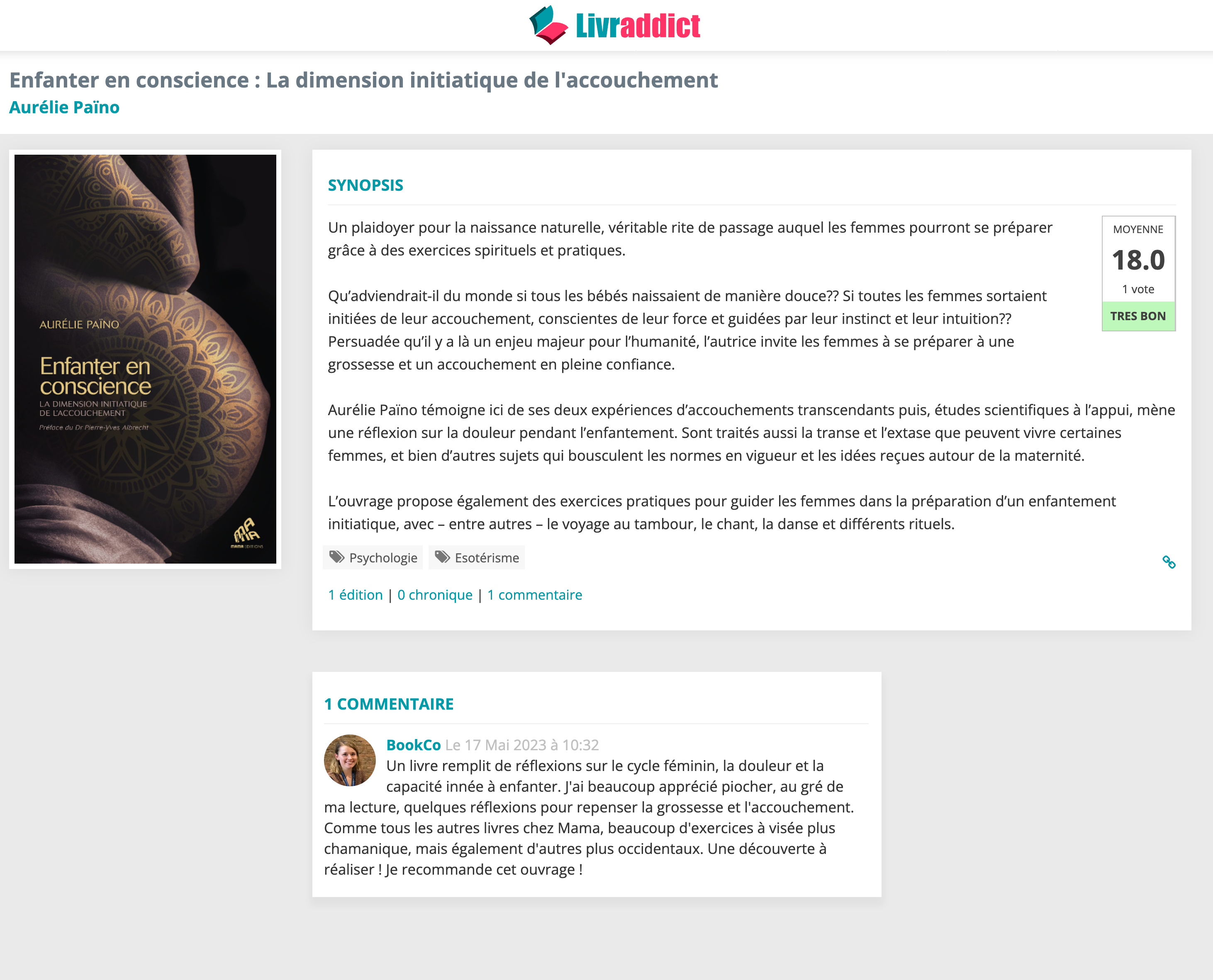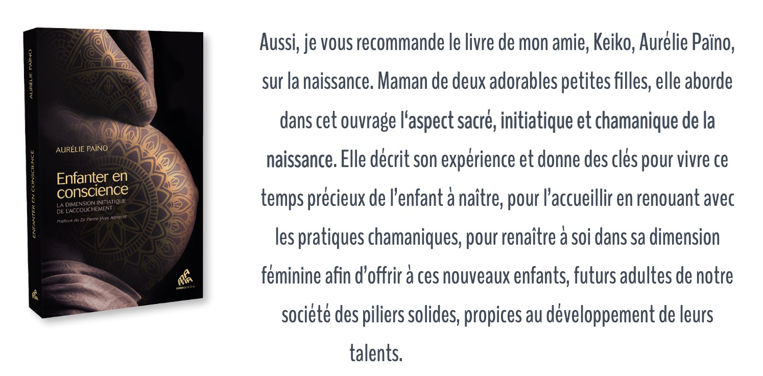 Aurélie Païno aborde dans cet ouvrage l‘aspect sacré, initiatique et chamanique de la naissance.