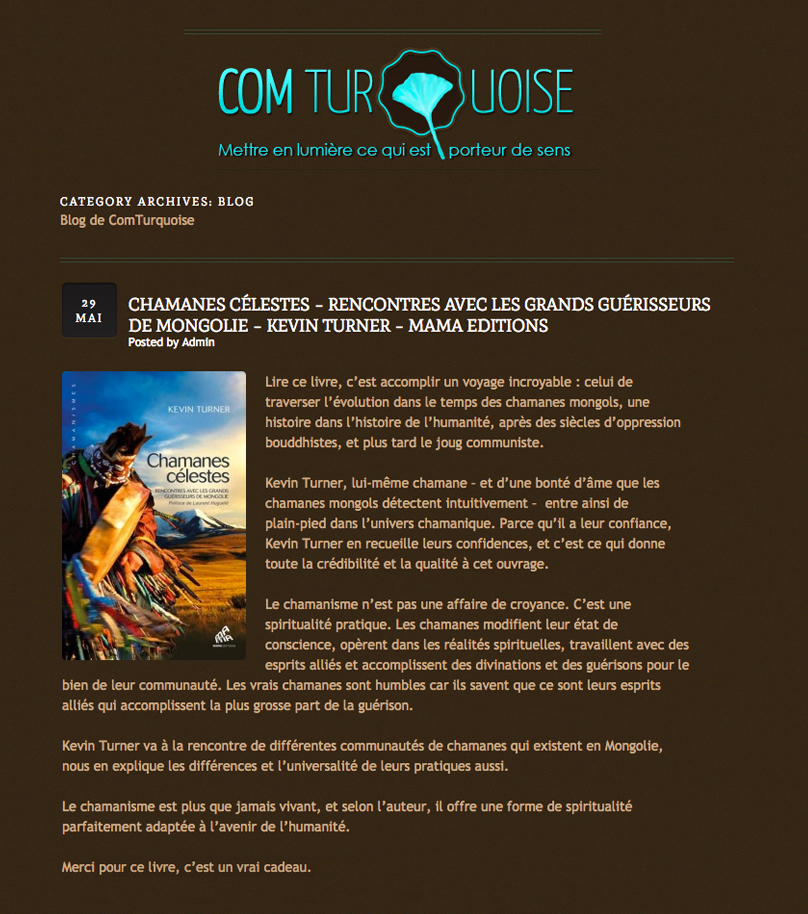Kevin Turner est un explorateur des mondes intérieurs, un chercheur tourné vers la découverte du sens profond de la vie. Son livre est non seulement un texte d’anthropologie, mais aussi un récit de voyage émaillé de surprises, qu’il nous parle de ciel ble
