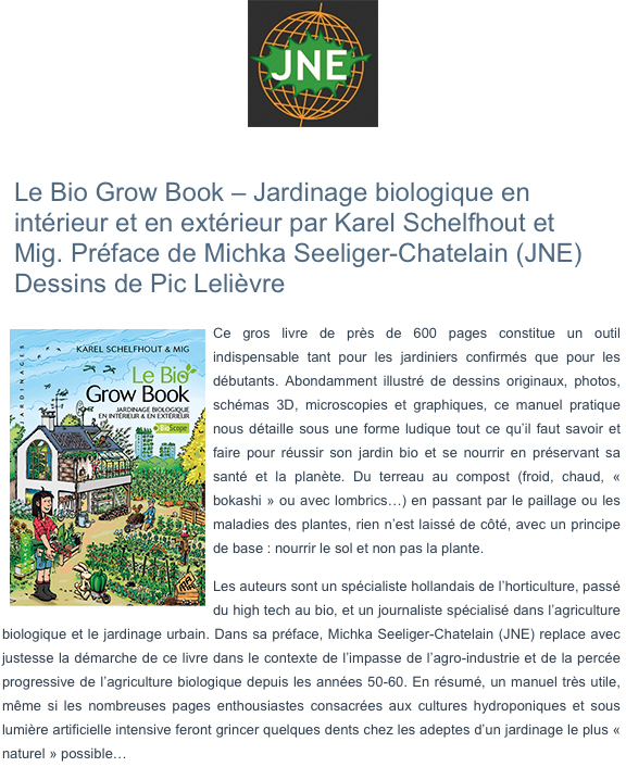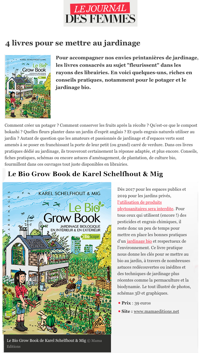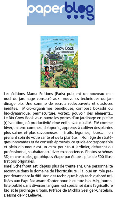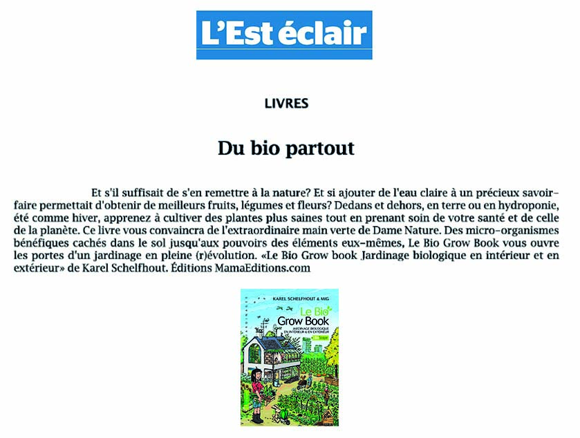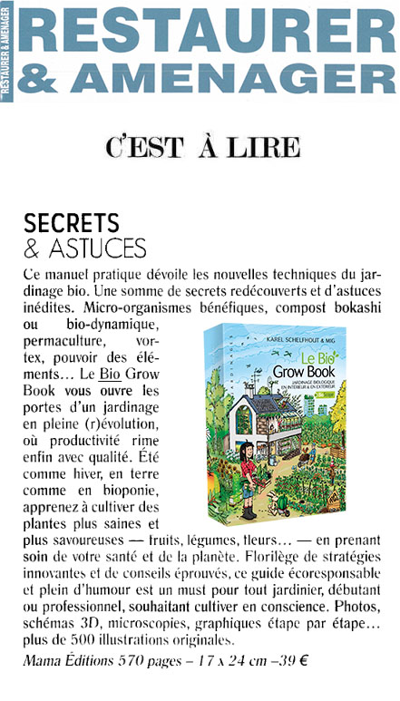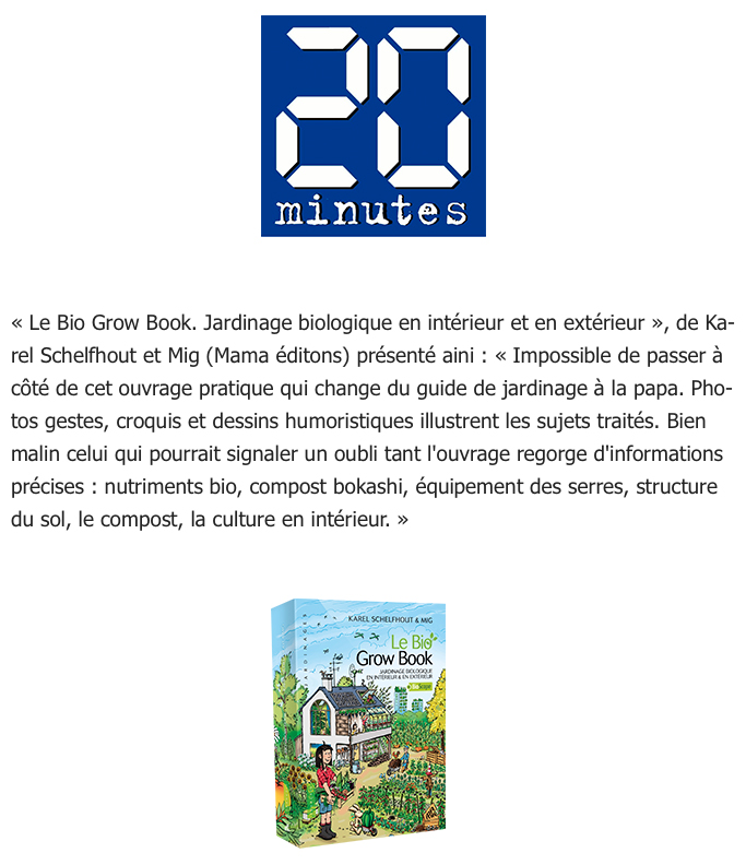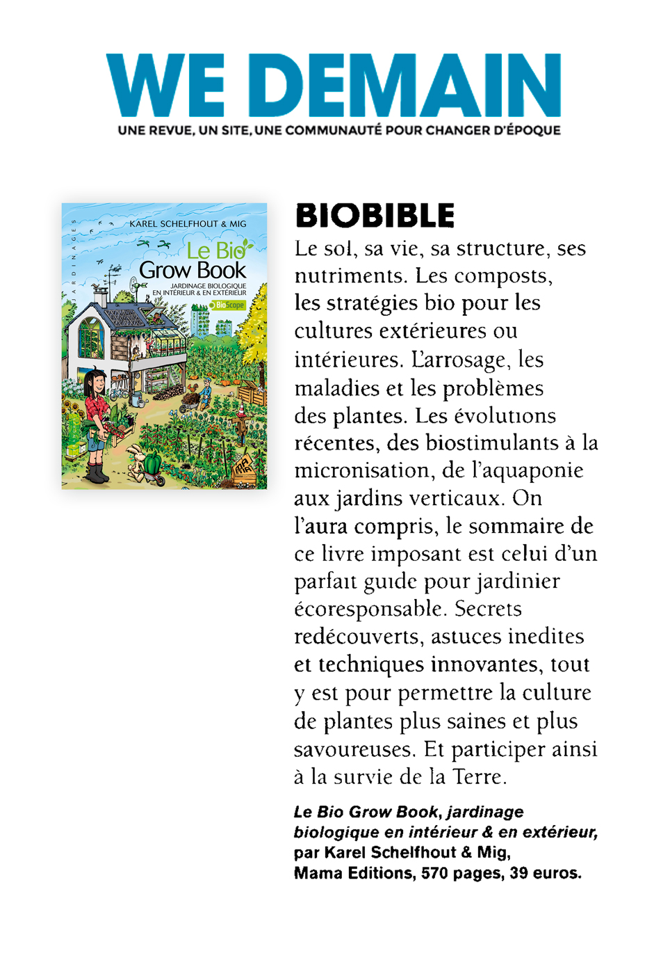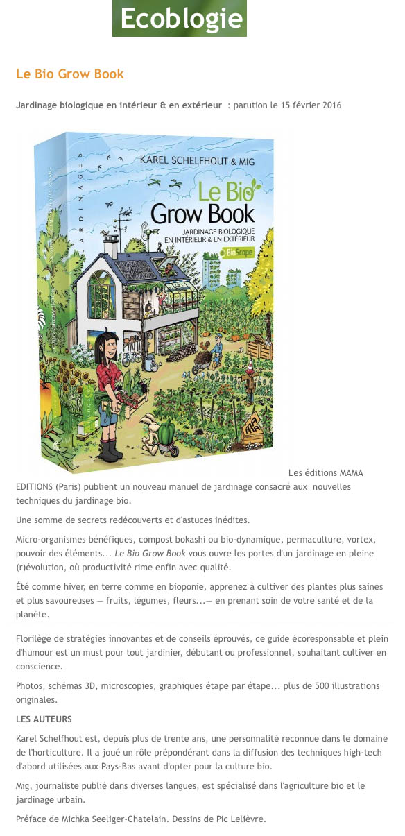Le [Bio Grow Book] est une synthèse bienvenue de toutes les pratiques du jardinage bio, nouvelles ou réinventées avec succès. (...) Les textes sont clairs et étoffés et les photos magnifiques.