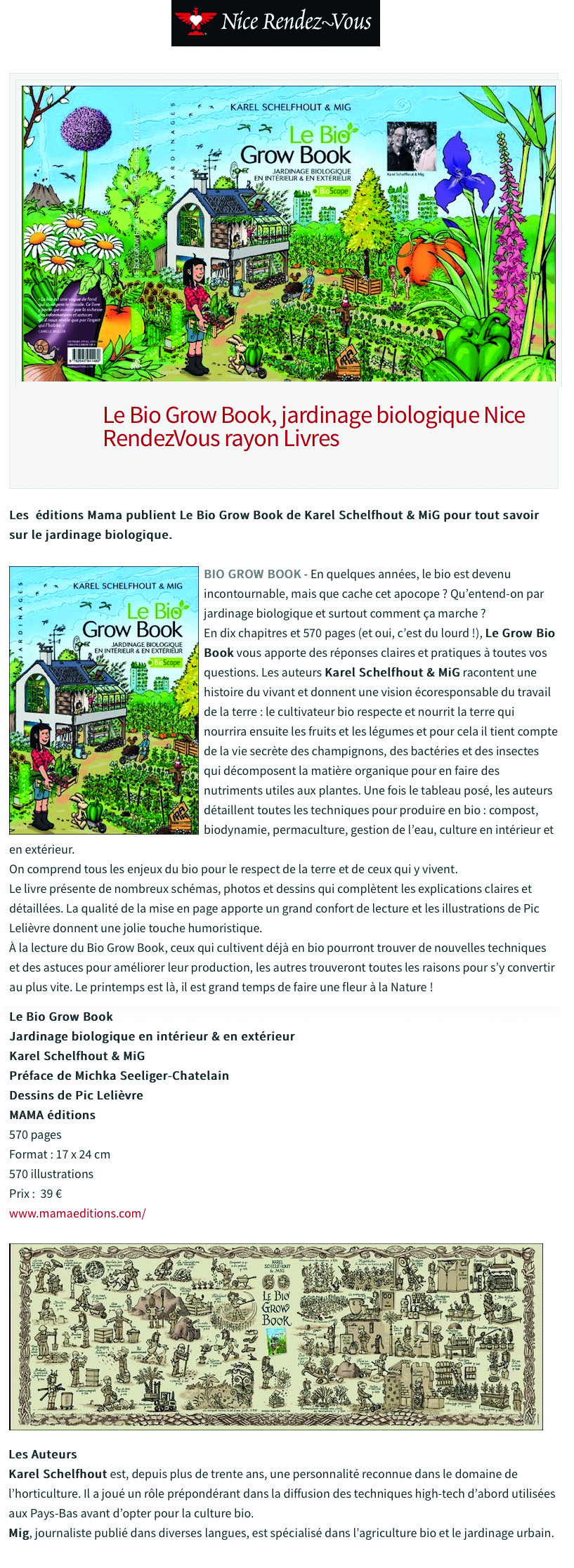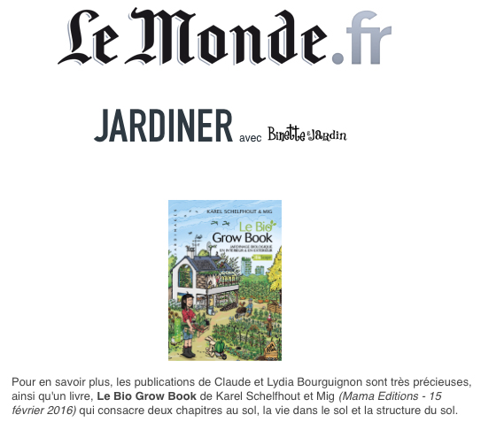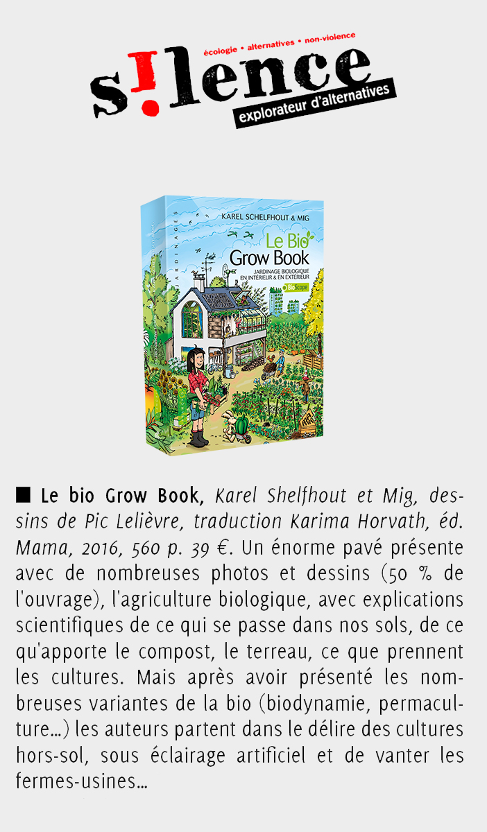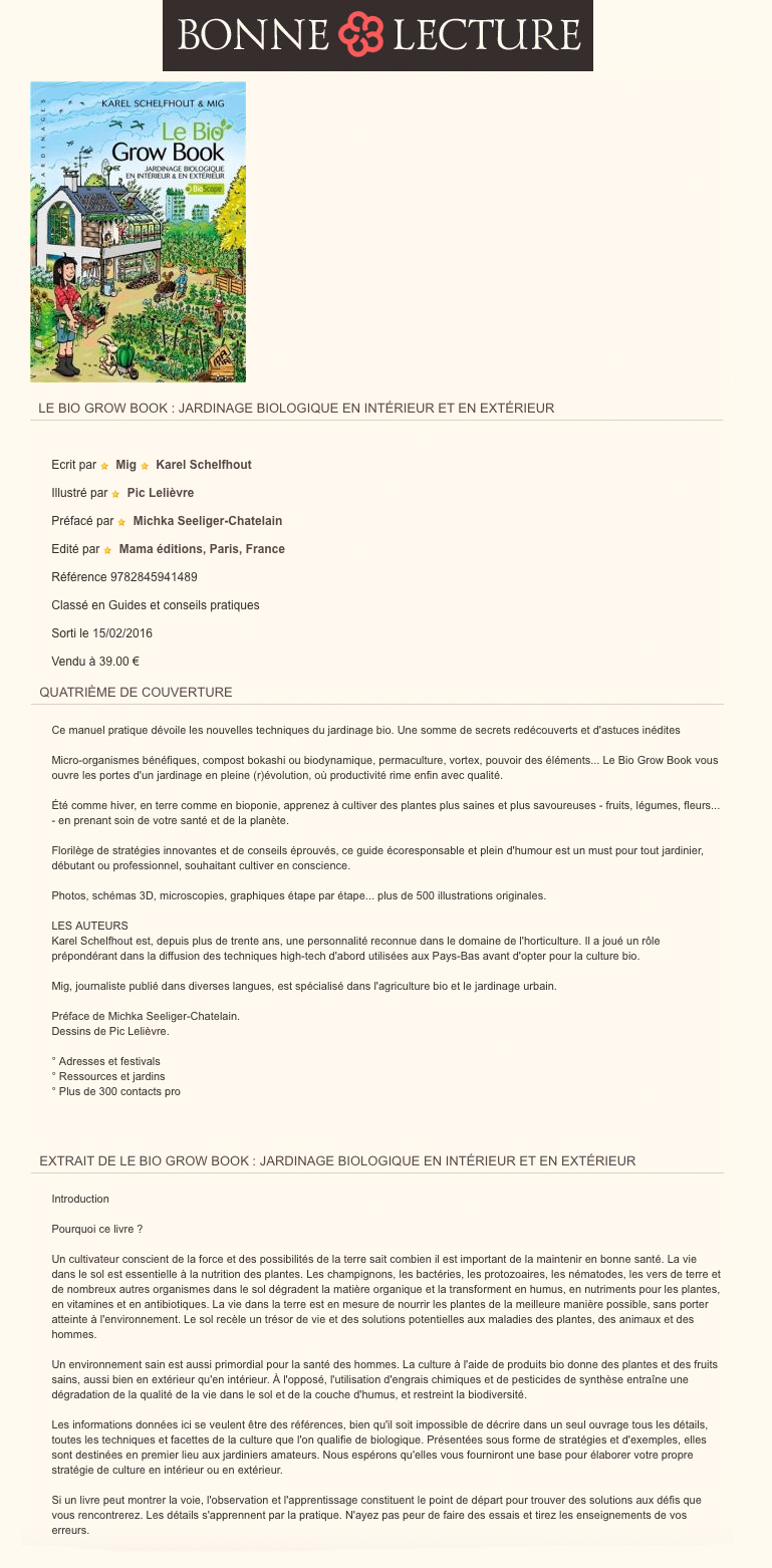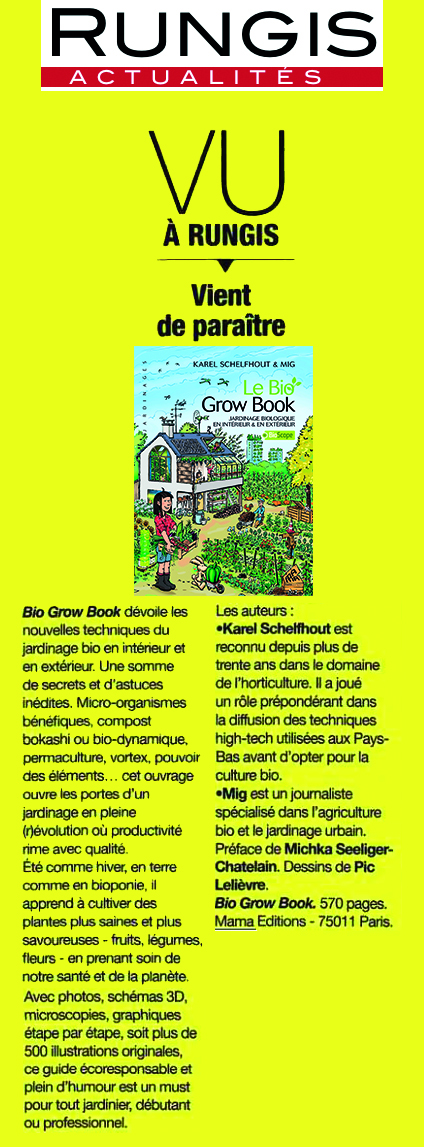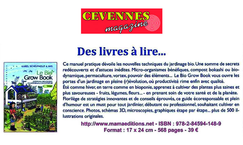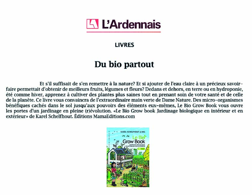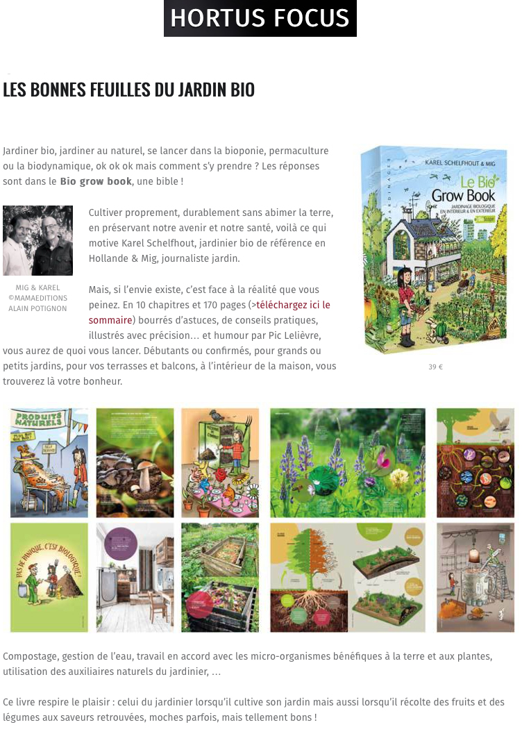 Le [Bio Grow Book] est une synthèse bienvenue de toutes les pratiques du jardinage bio, nouvelles ou réinventées avec succès. (...) Les textes sont clairs et étoffés et les photos magnifiques.
