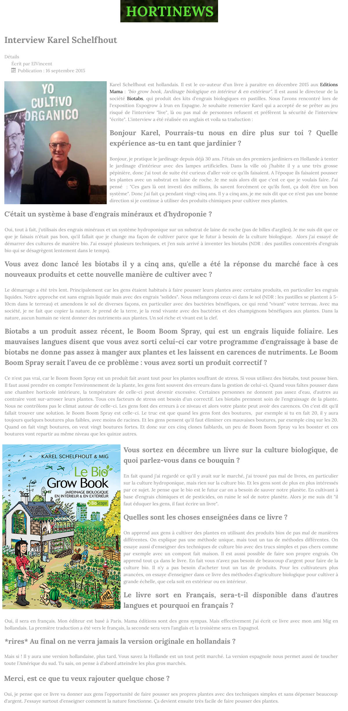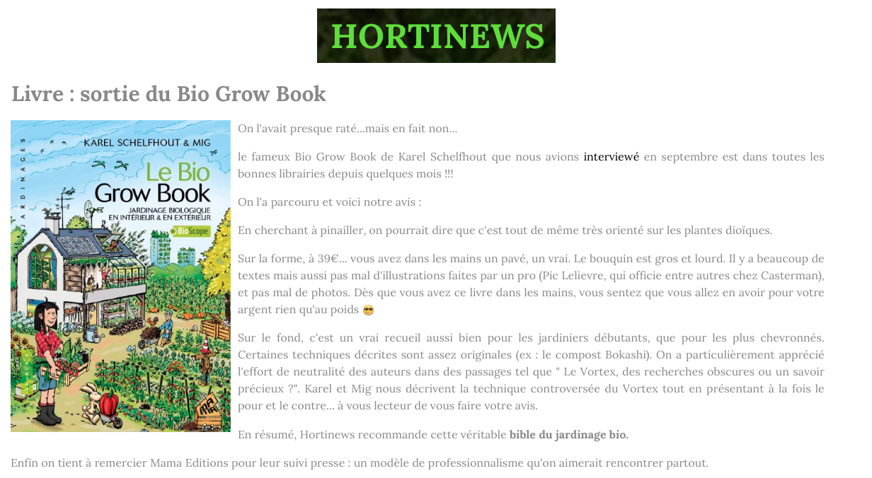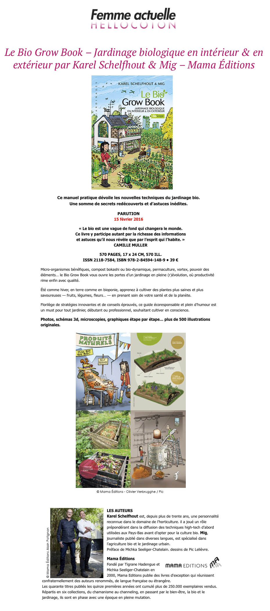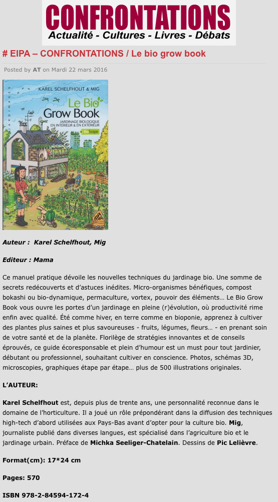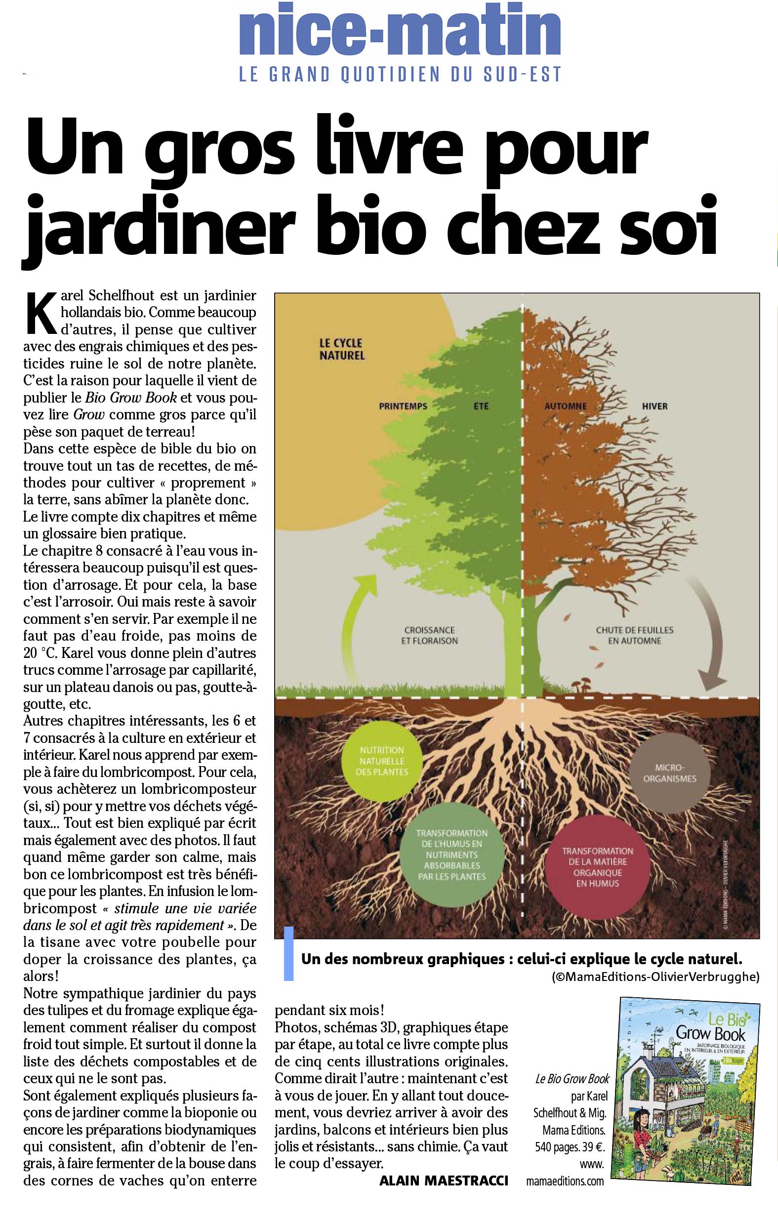 Le [Bio Grow Book] est une synthèse bienvenue de toutes les pratiques du jardinage bio, nouvelles ou réinventées avec succès. (...) Les textes sont clairs et étoffés et les photos magnifiques.