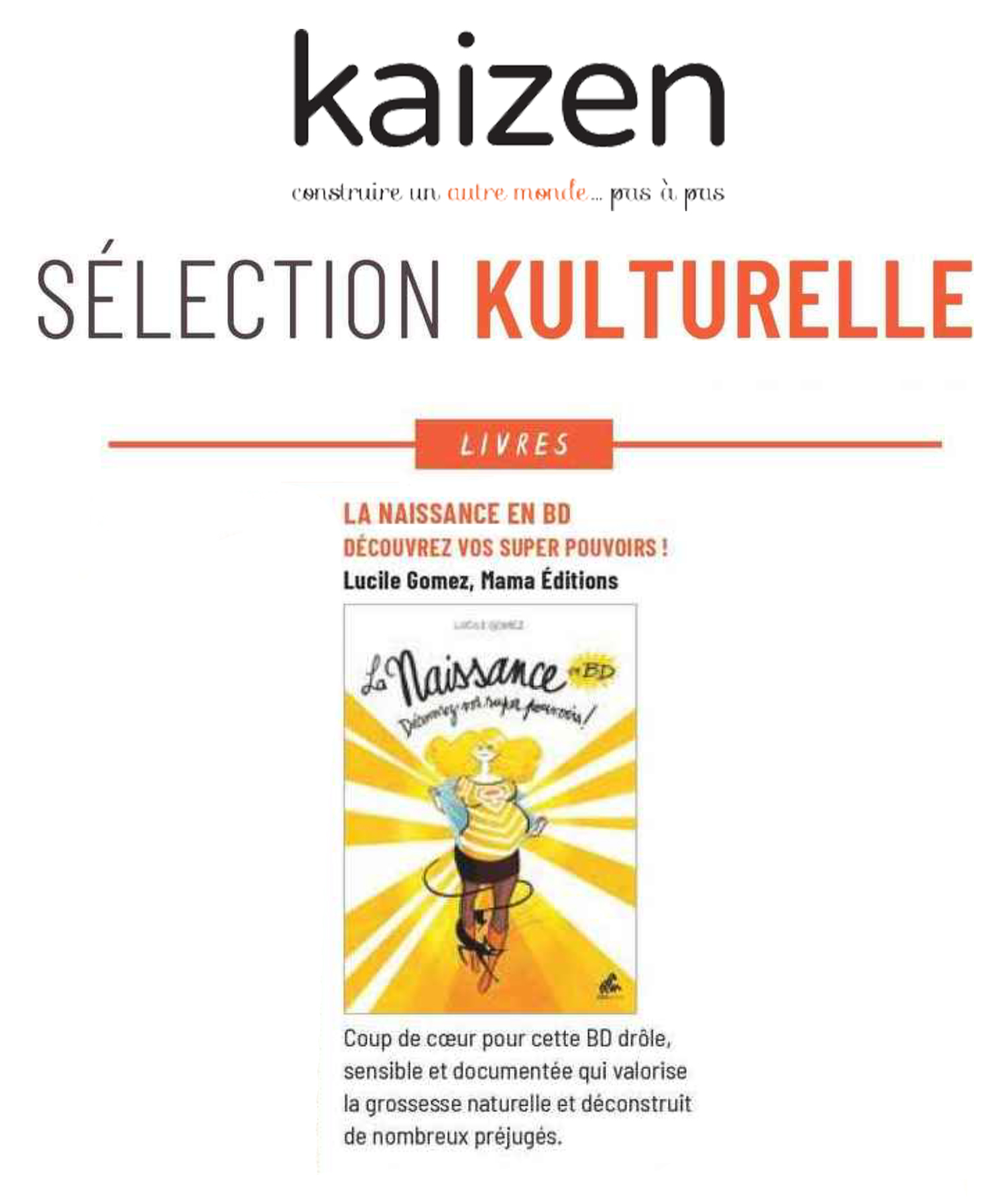 Un livre qui nous réconcilie avec notre capacité à nous les femmes de pouvoir donner la vie sans avoir un accouchement médicalisé.