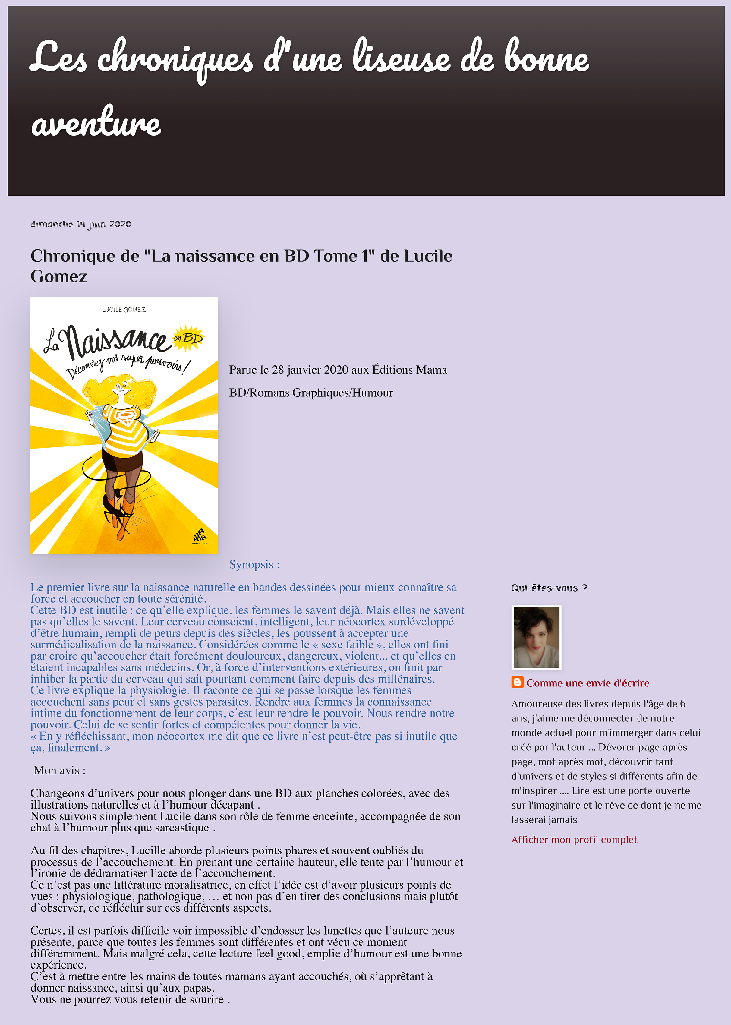 Chronique : La Naissance en BD - Tome I de Lucile Gomez (Mama éditions).