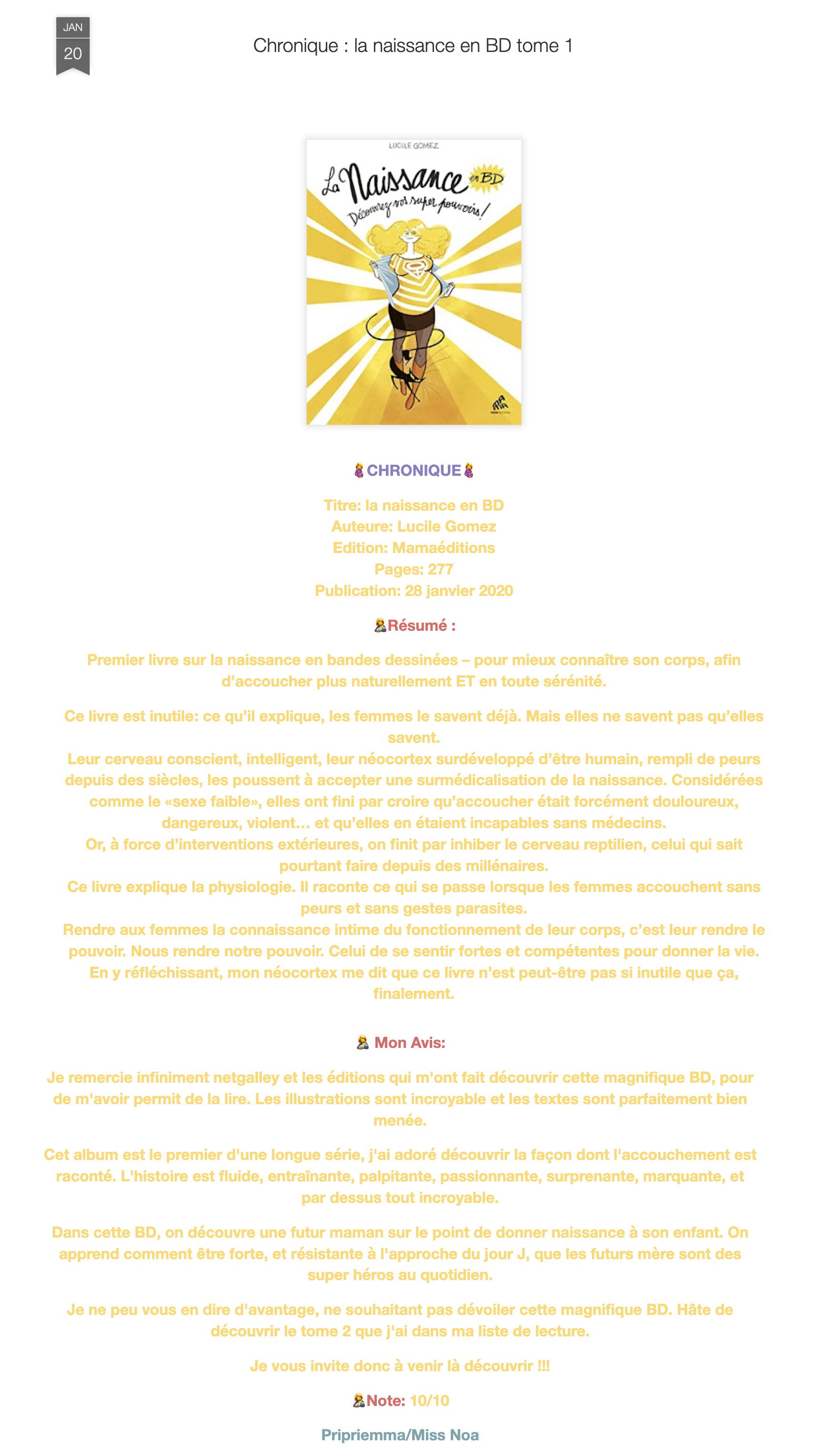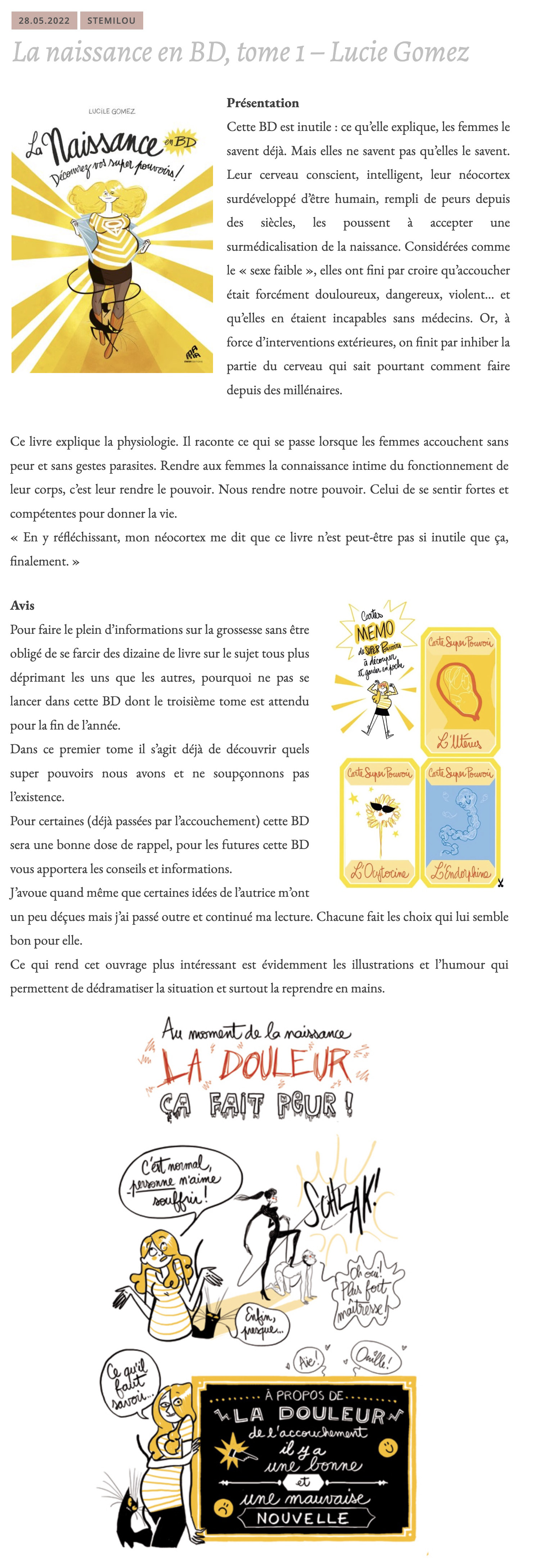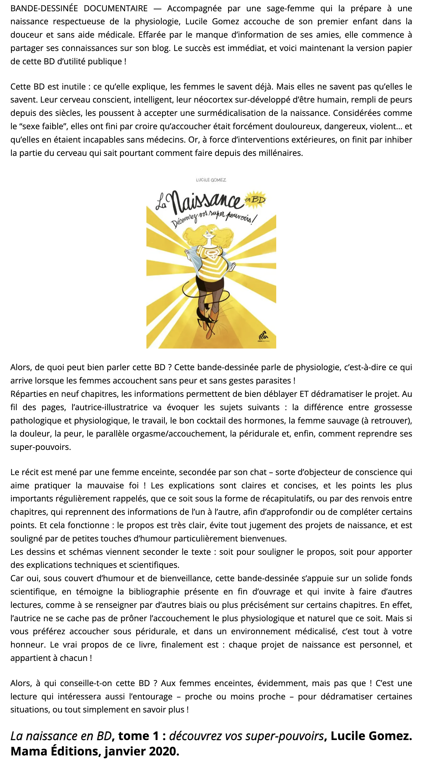 Il faudrait que cette BD soit obligatoire pour toutes les femmes qui veulent accoucher avec ou sans péridurale (…) des informations primordiales.