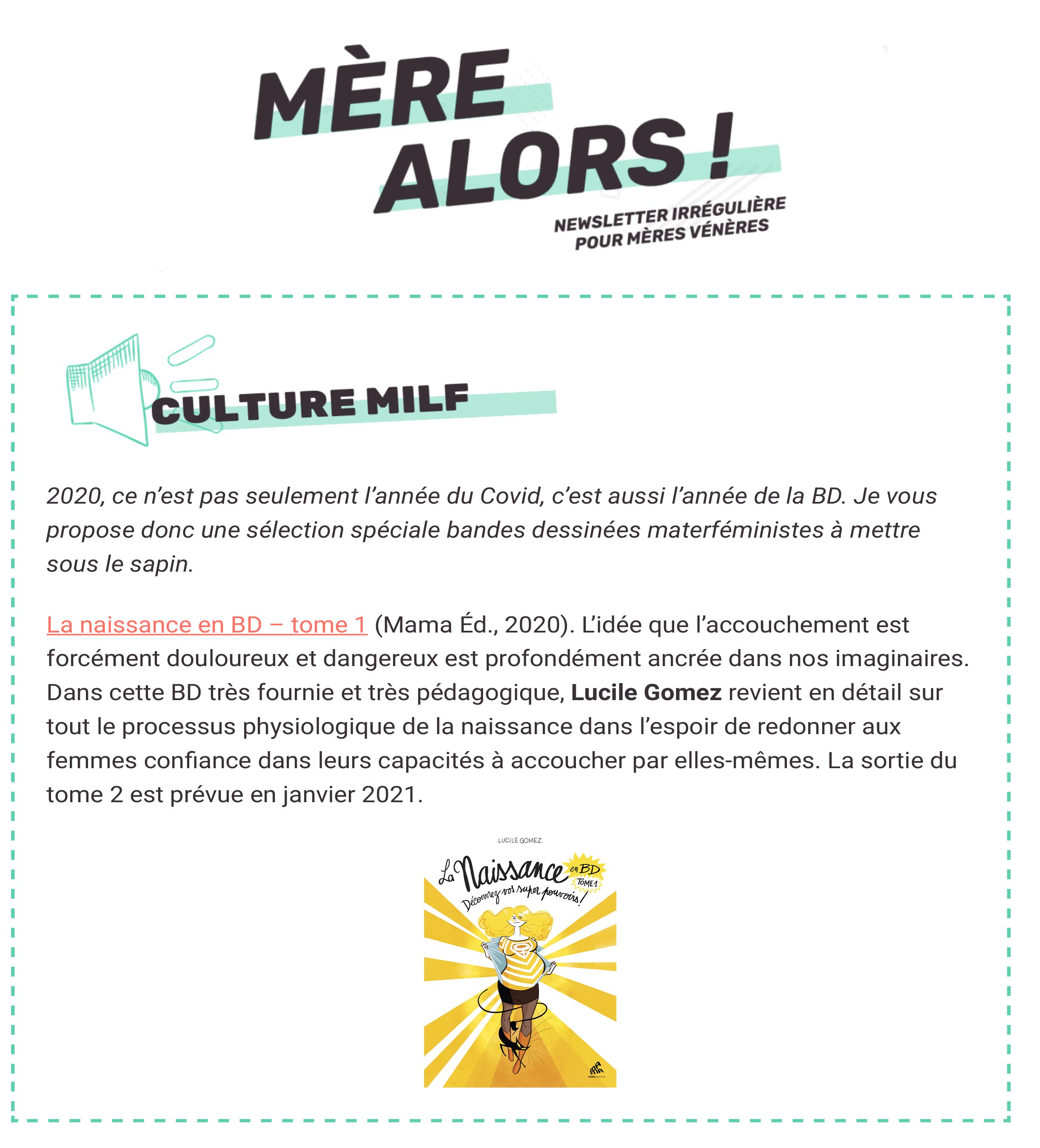 Un concentré de sororité à mettre entre toutes les mains, et surtout celles des futures mères.