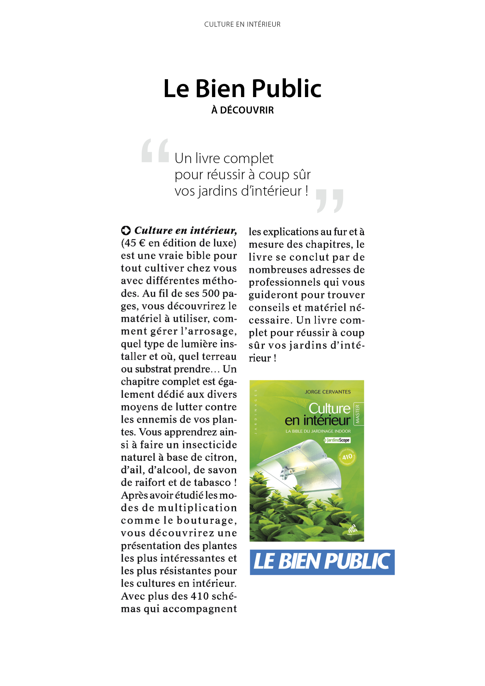 Considéré comme la bible de la culture de plantes en intérieur, ce guide saura vous apporter les réponses aux questions que vous pourriez vous poser. (…) De nombreuses illustrations, schémas et astuces pour devenir un as en la matière !