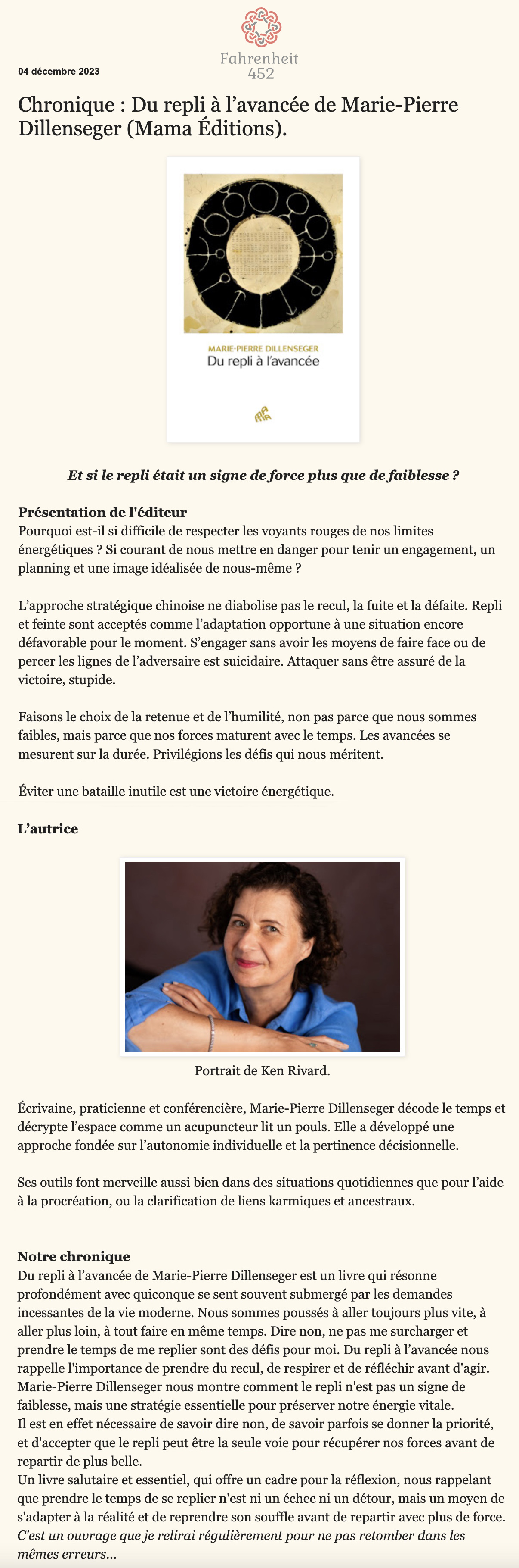 Un livre salutaire et essentiel, qui offre un cadre pour la réflexion, nous rappelant que prendre le temps de se replier n'est ni un échec ni un détour, mais un moyen de s'adapter à la réalité et de reprendre son souffle avant de repartir avec plus de for