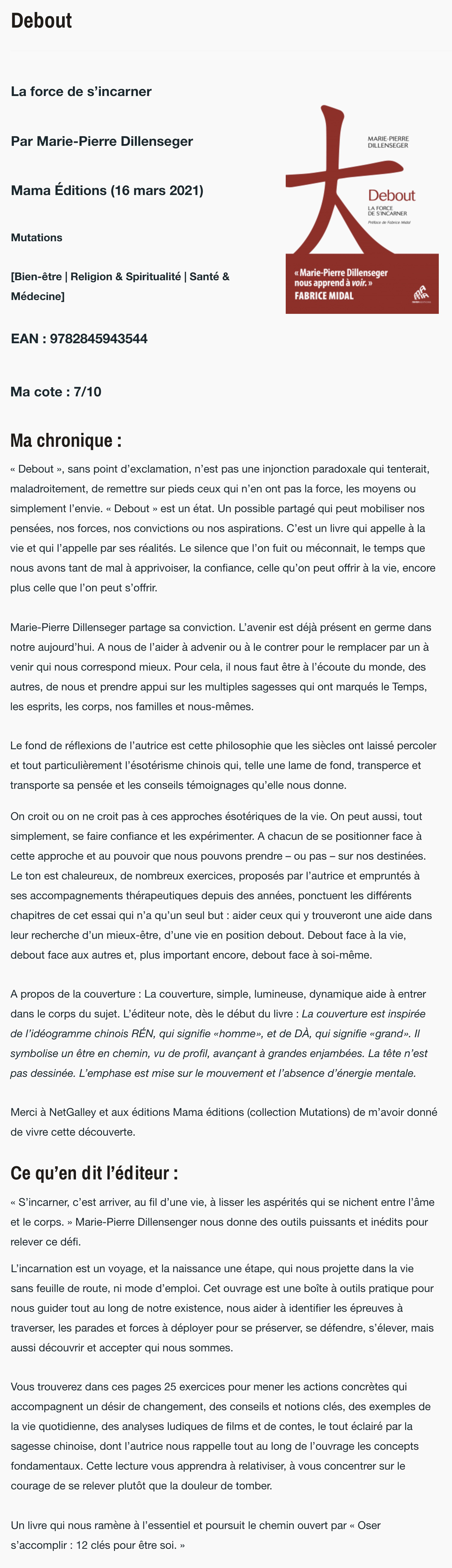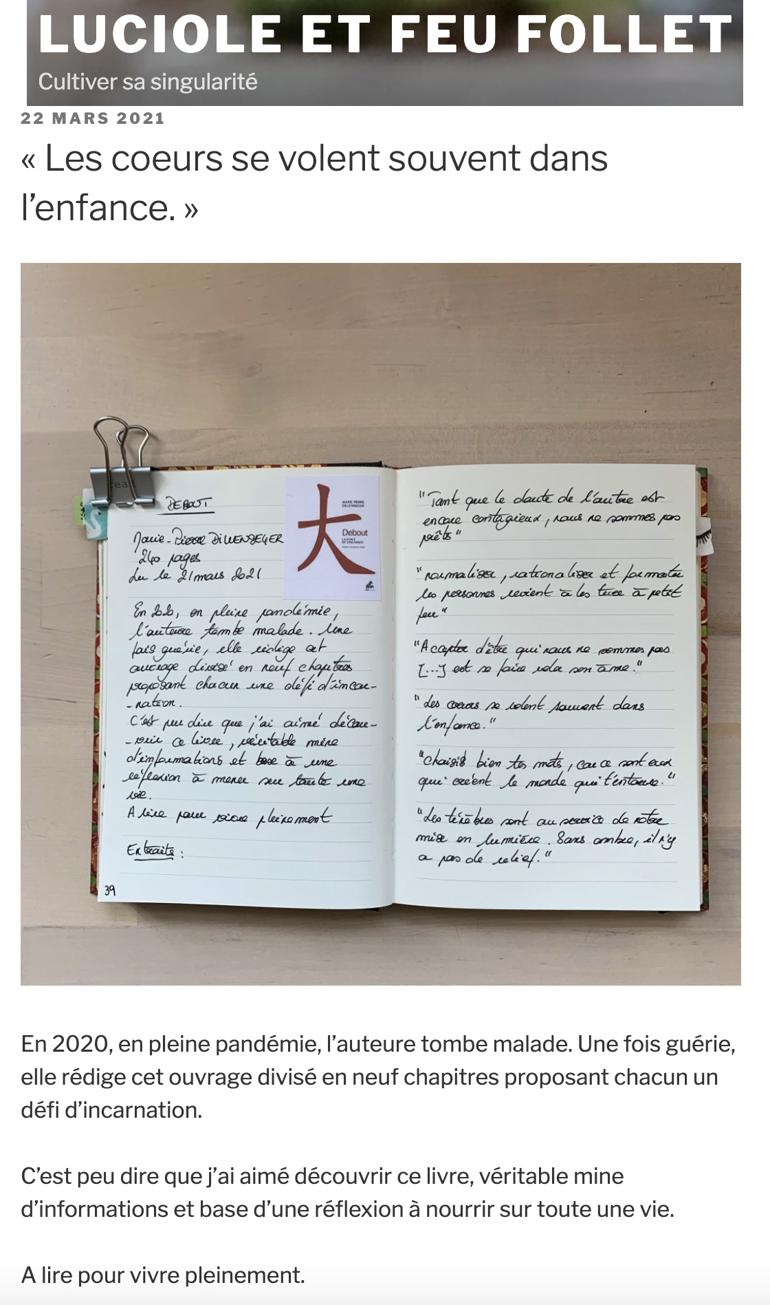 Je viens de finir [Debout] et n’ai qu’une envie : le reprendre. Merci de cette œuvre si incarnée !