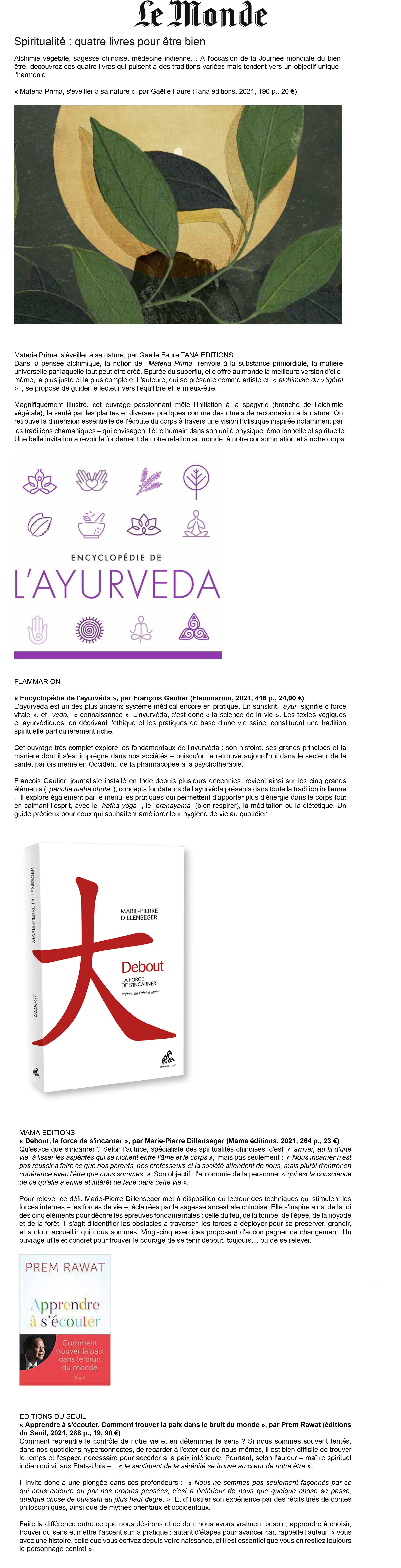 Un ouvrage autant pratique que spirituel, aux accents occidentaux et orientaux, qui mène vers un chemin plus serein. À mettre entre toutes les mains.
