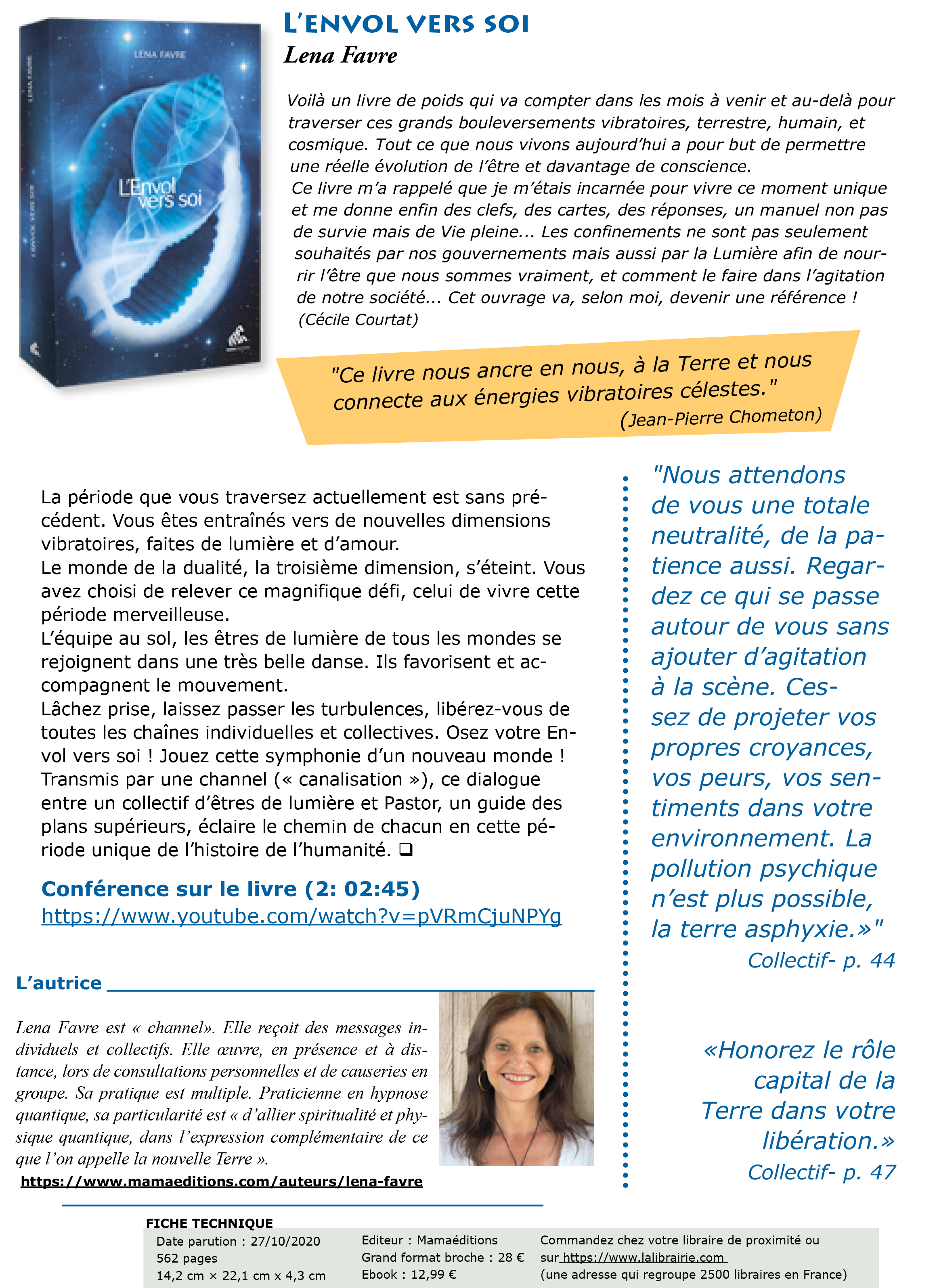 Ce livre nous amène à lâcher prise, nous libérer de toutes les chaînes individuelles et collectives pour oser notre “Envol vers soi”