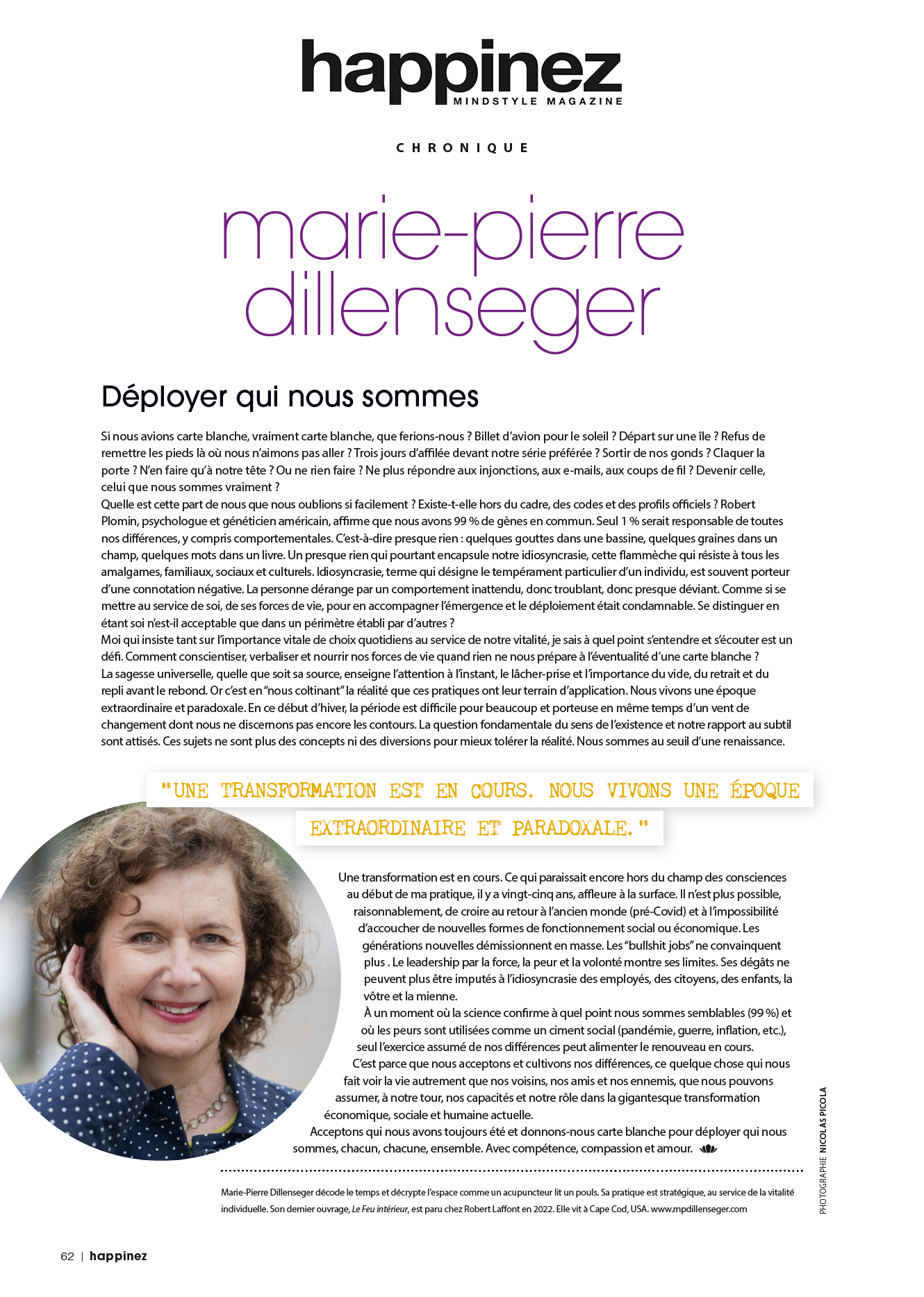 Chronique de Marie-Pierre Dillenseger, autrice de [Lire les signes et trouver son chemin].