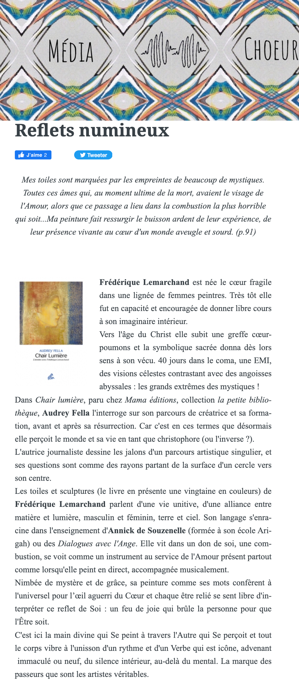 Chronique sur [Chair Lumière, Entretien avec Frédérique Lemarchand] d’Audrey Fella.
