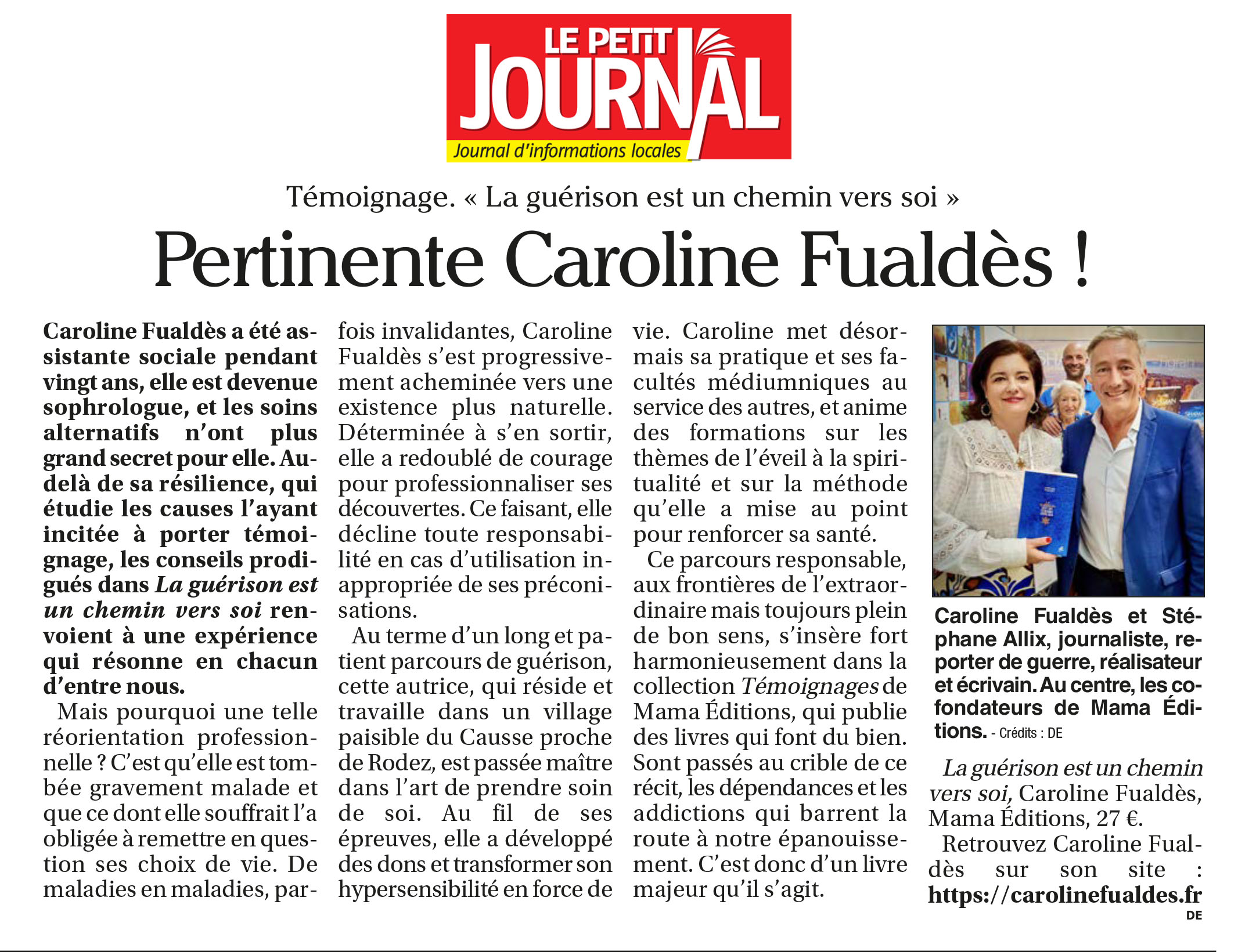 e livre de Caroline Fualdès est un message d’espoir : en transmettant son cheminement, elle permet à tout un chacun de trouver le sien.