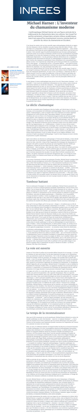 Michael Harner bouleverse la compréhension contemporaine de ce phénomène.