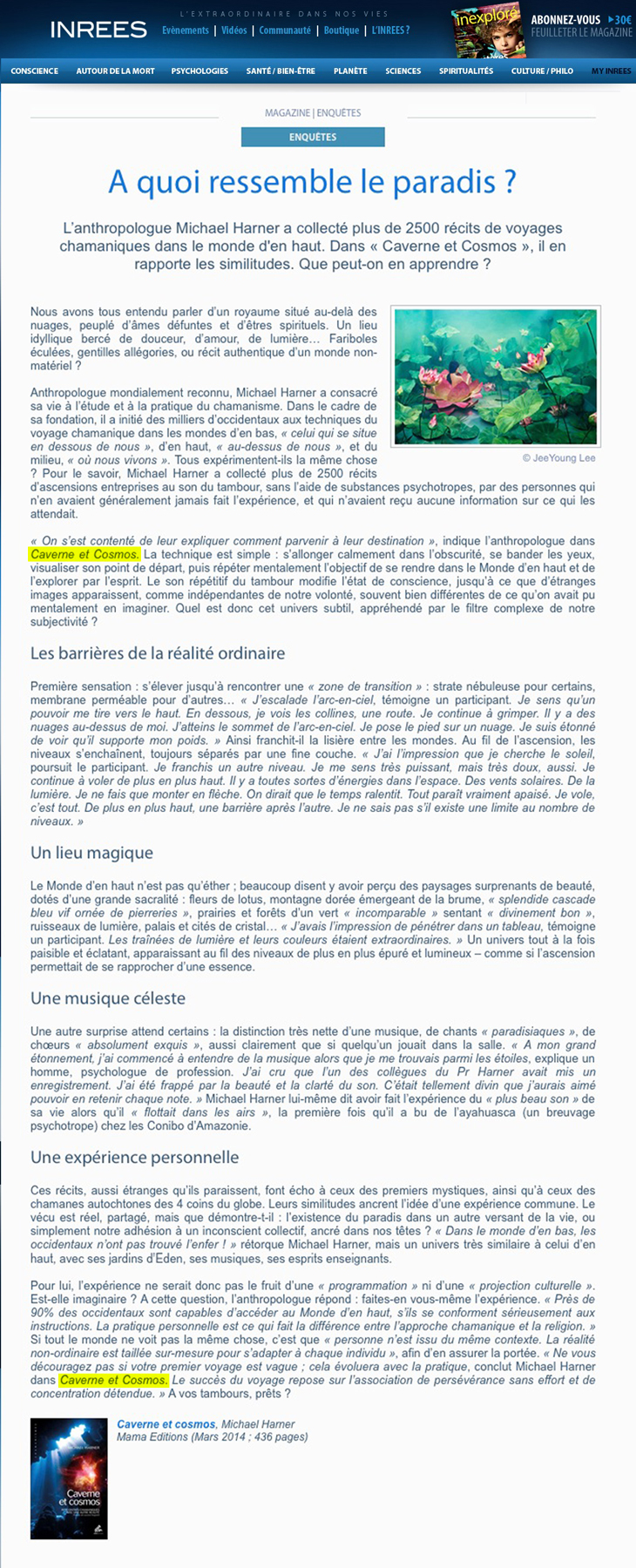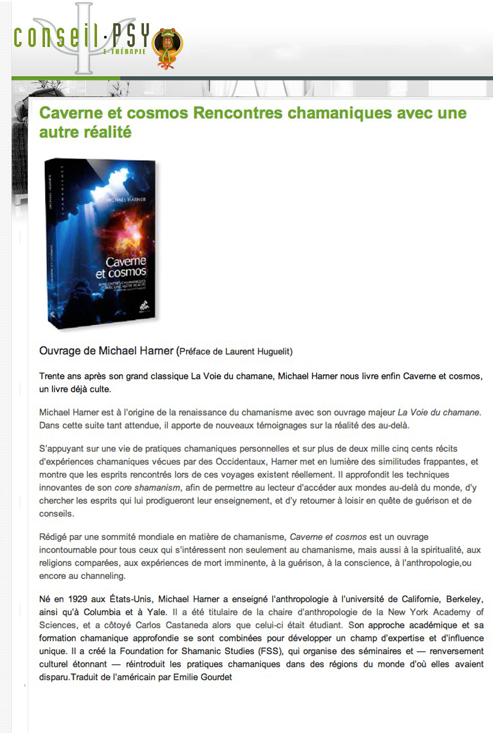 [Caverne et Cosmos] est une mine d’informations et deviendra sans aucun doute un classique du mouvement de renaissance mondiale du chamanisme.
