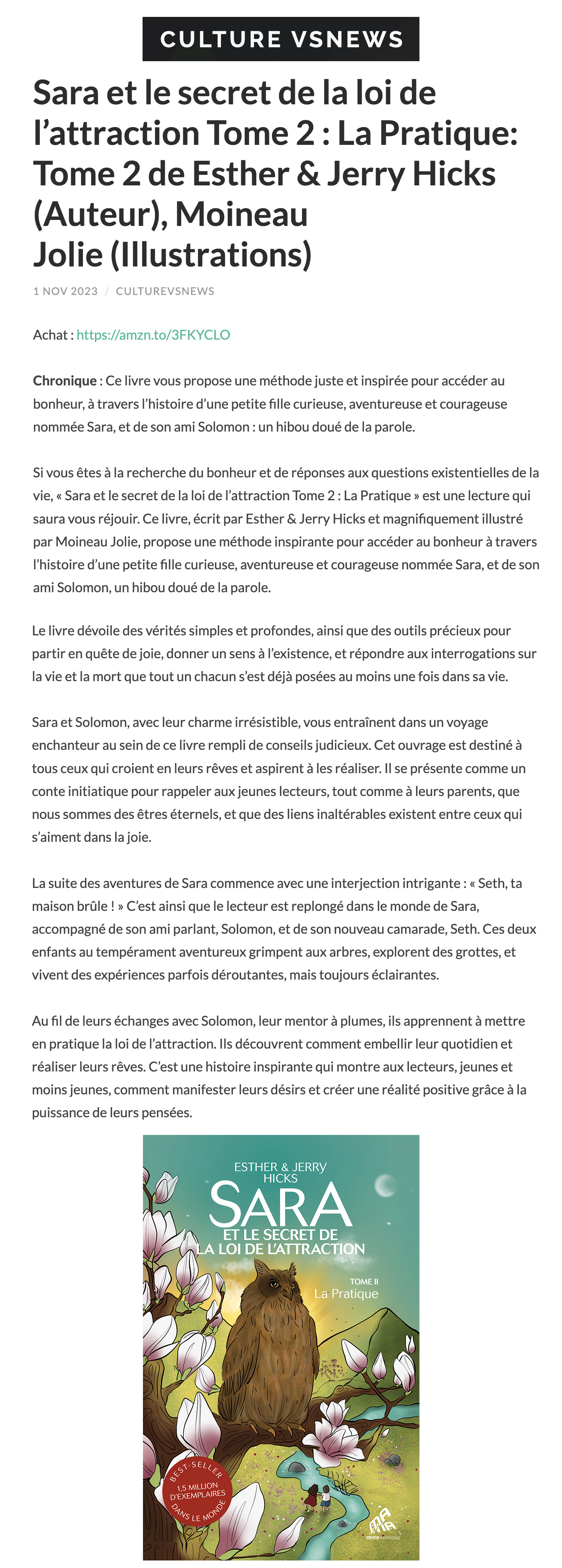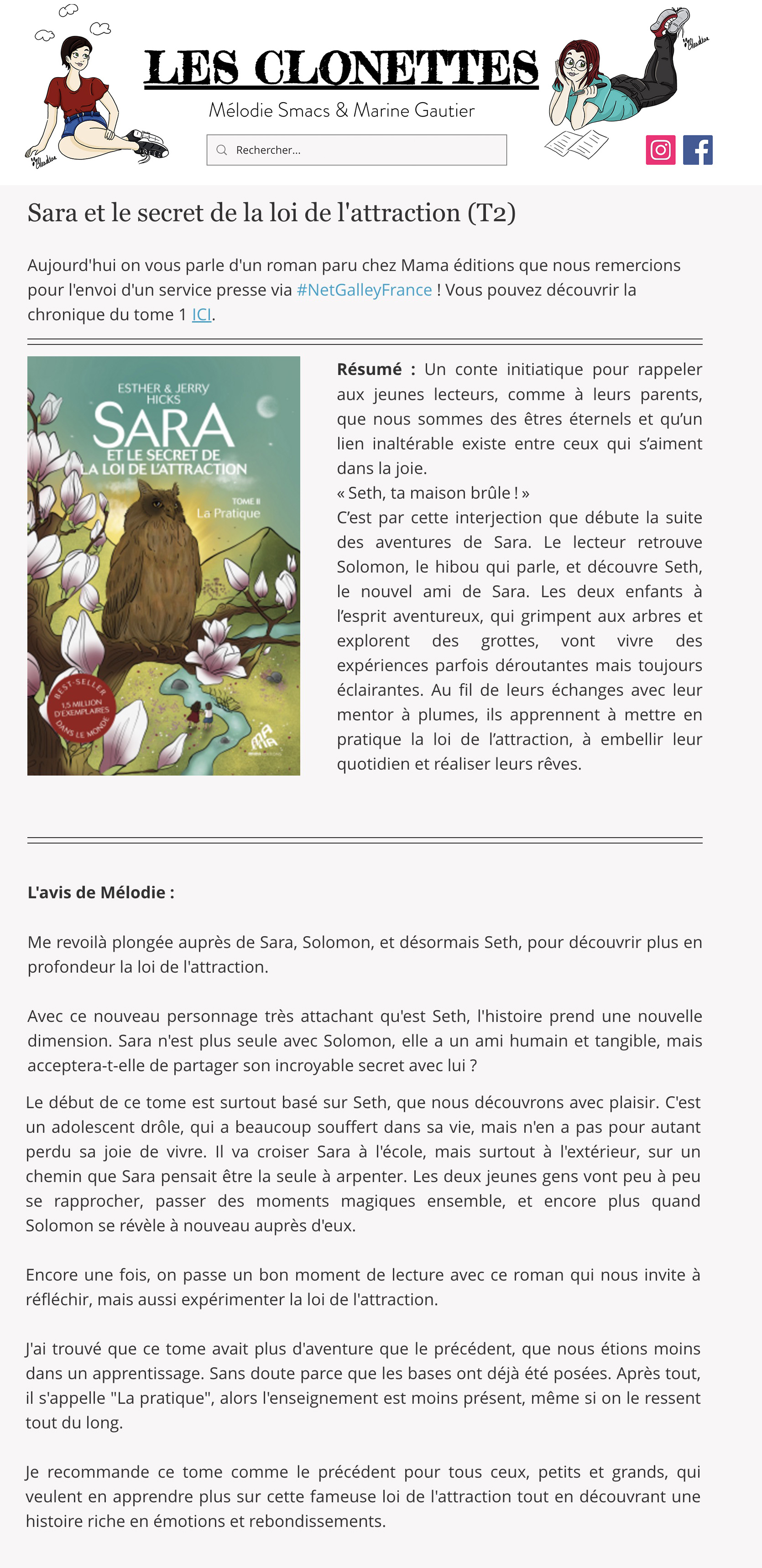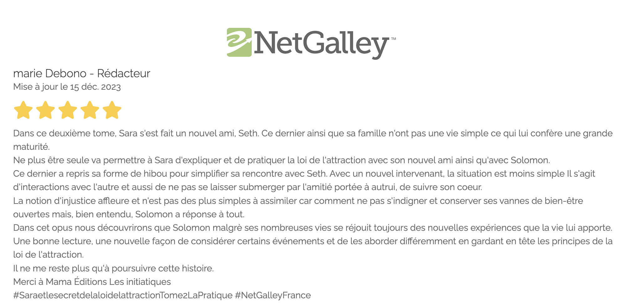 Je recommande ce tome comme le précédent pour tous ceux, petits et grands, qui veulent en apprendre plus sur cette fameuse loi de l'attraction tout en découvrant une histoire riche en émotions et rebondissements.
