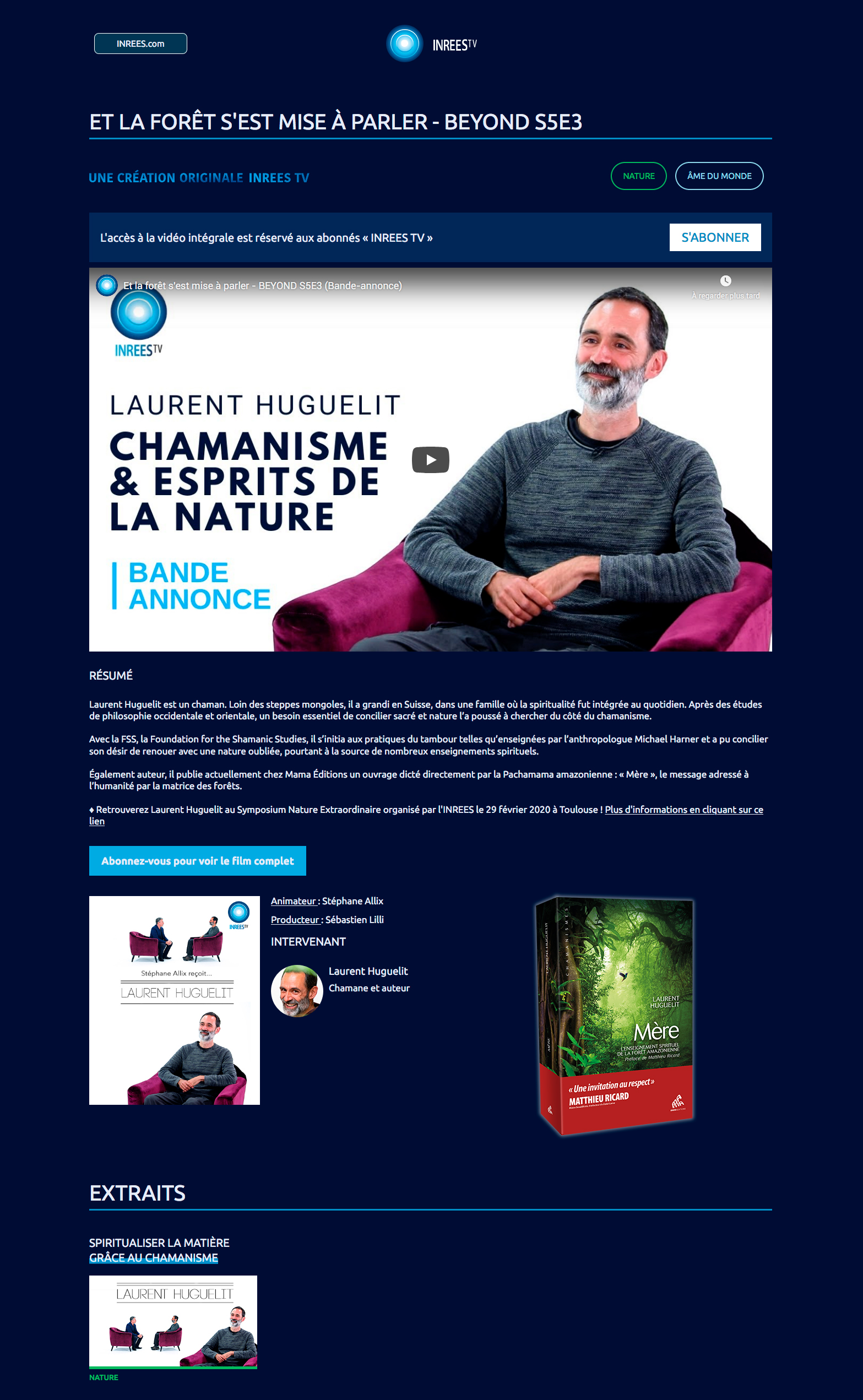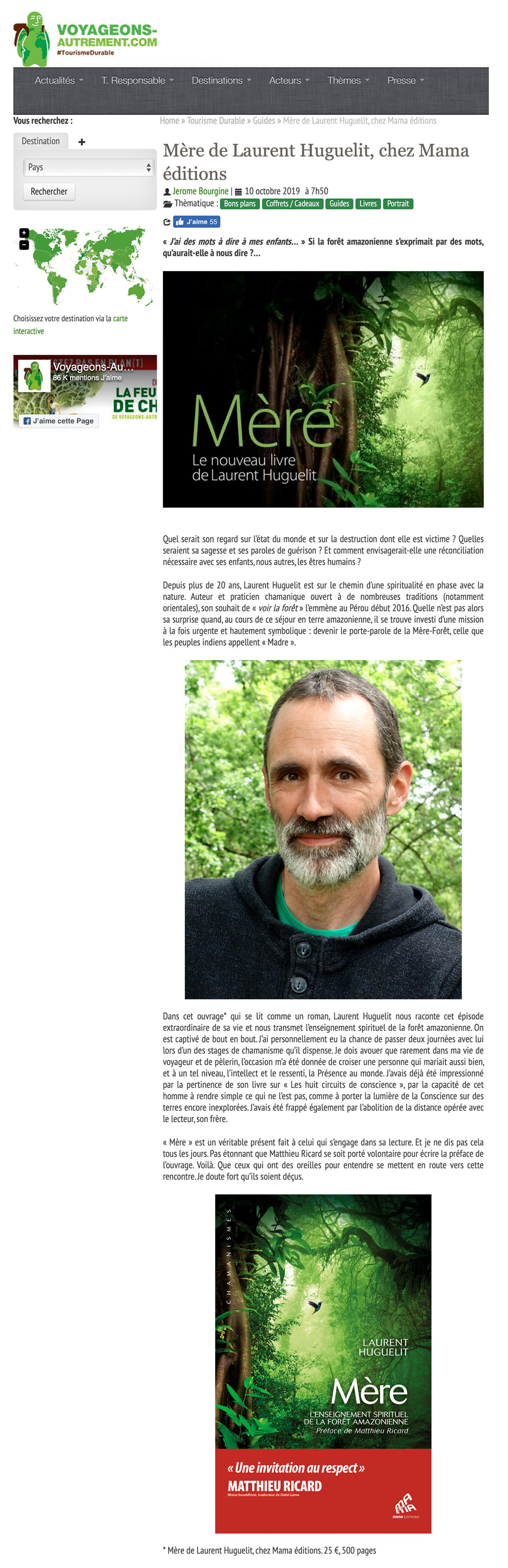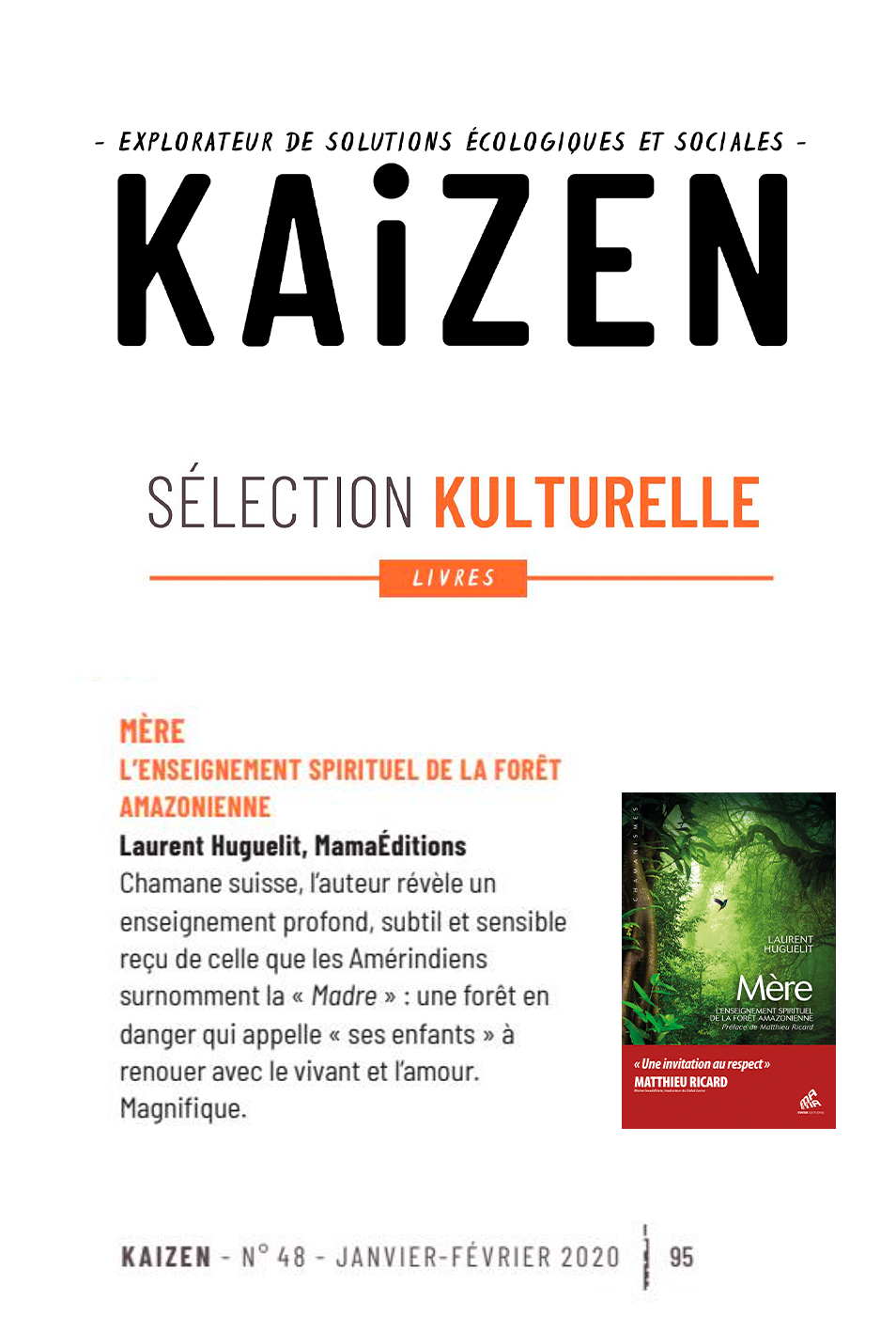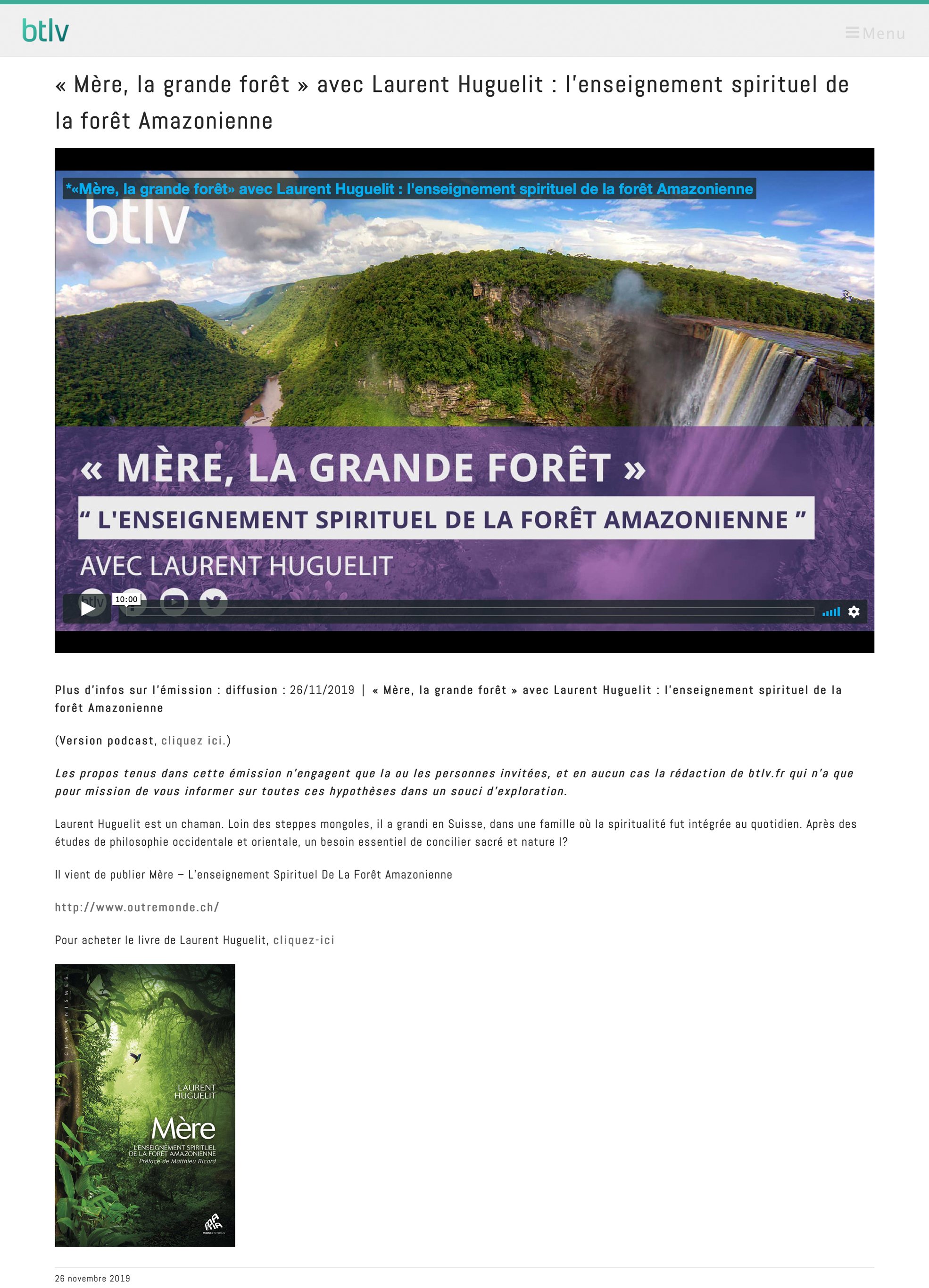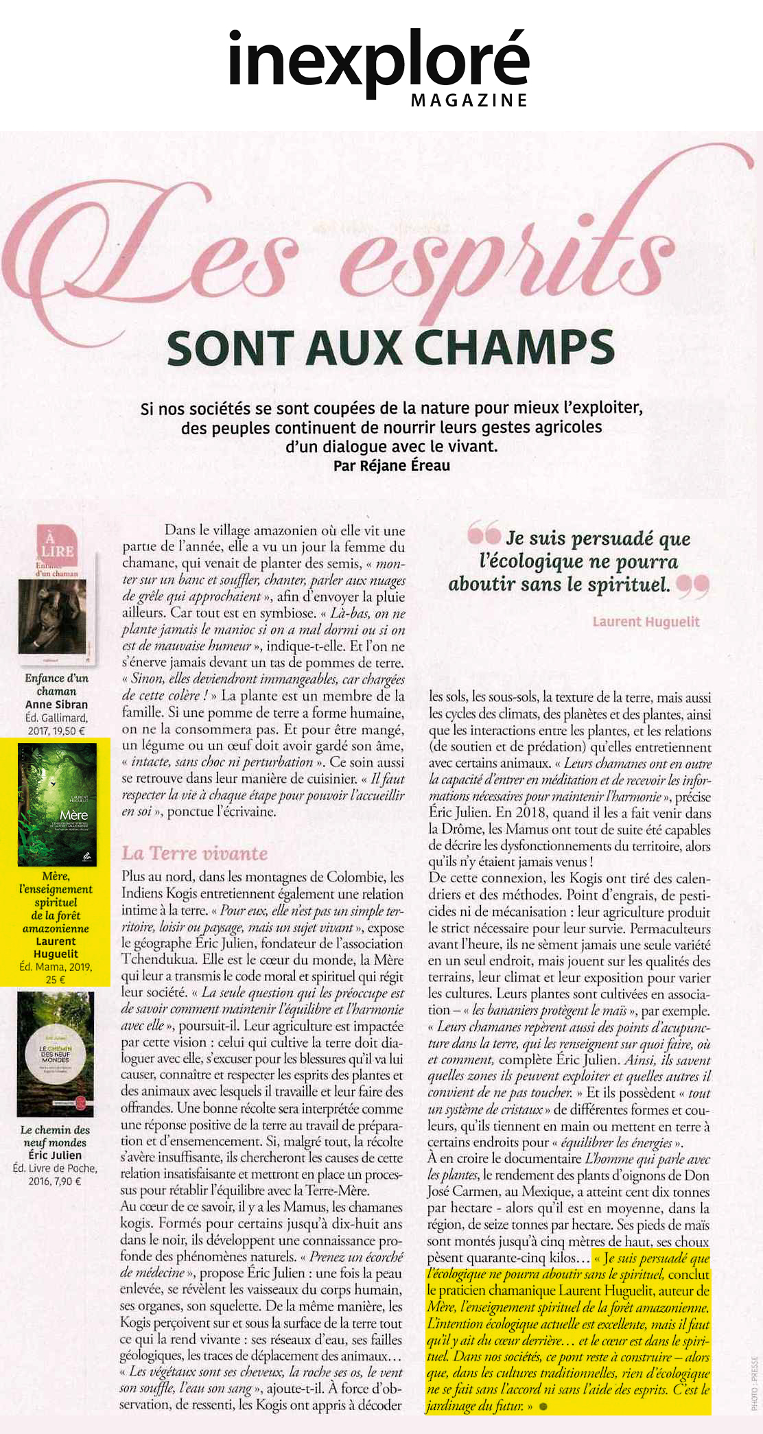 Dans cet ouvrage qui se lit comme un roman, Laurent Huguelit nous raconte cet épisode extraordinaire de sa vie et nous transmet l’enseignement spirituel de la forêt amazonienne. On est captivé de bout en bout.
