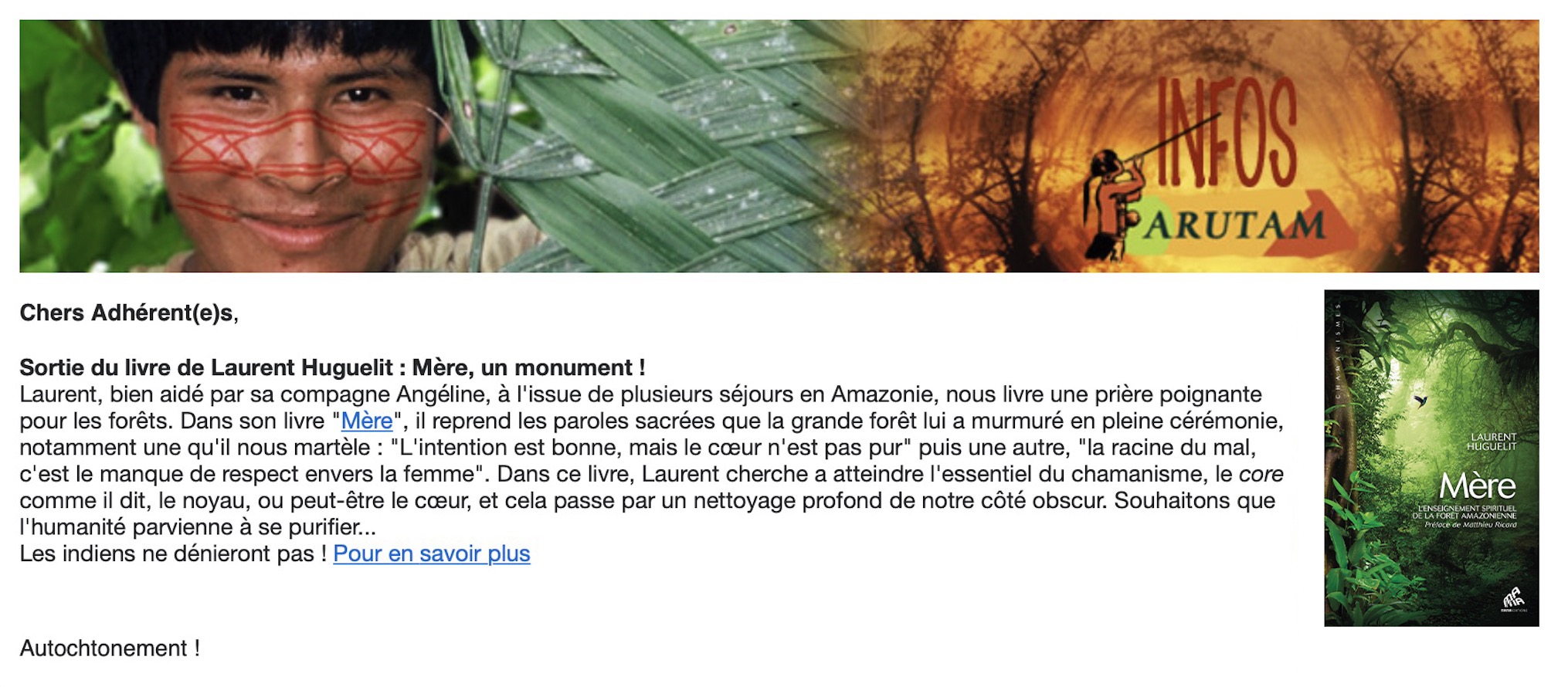 Bravo d'avoir partagé la parole de la Terre à travers ce livre...