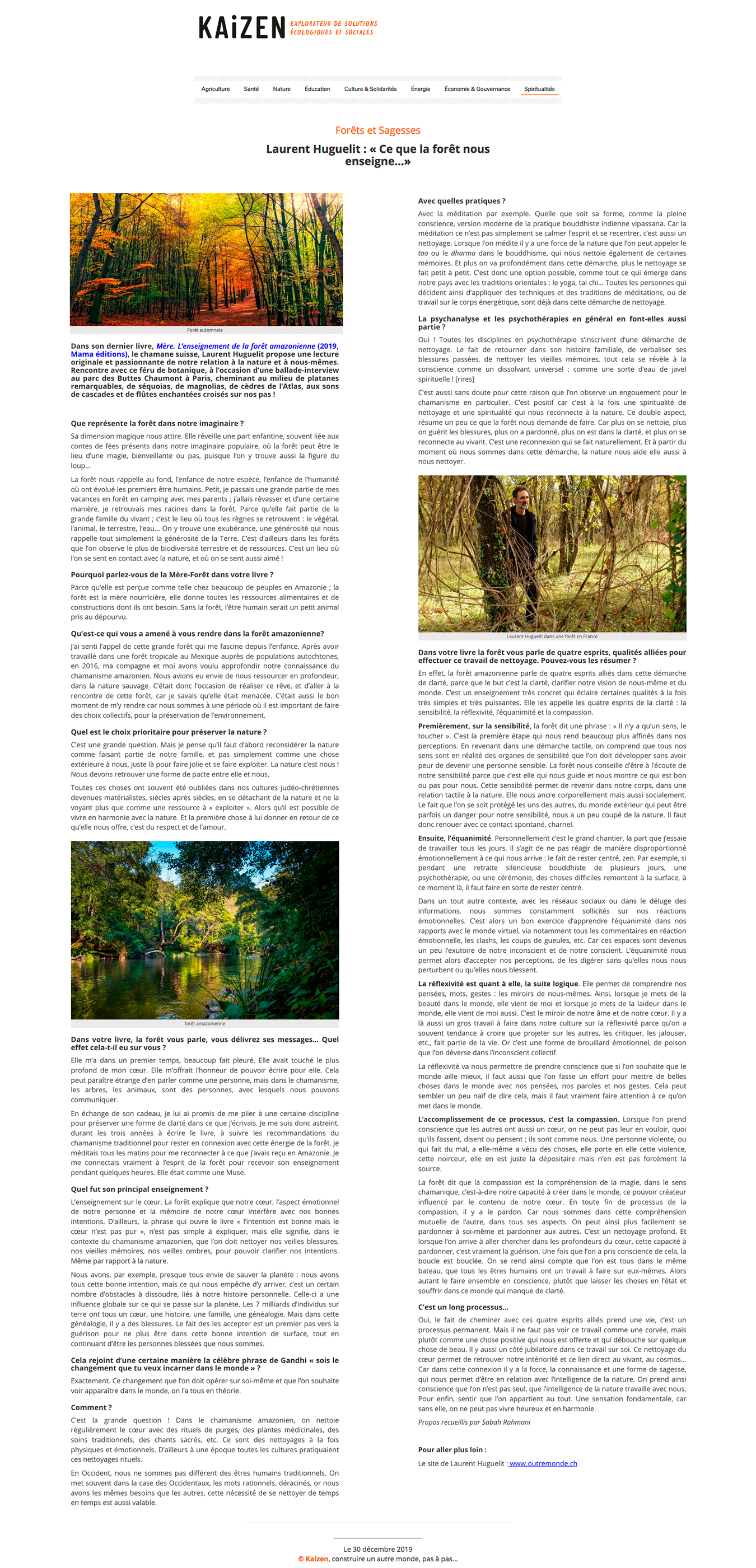 Quand Laurent Huguelit partage les enseignements spirituels de la forêt amazonienne, on sent l’étonnante densité des messages canalisés.