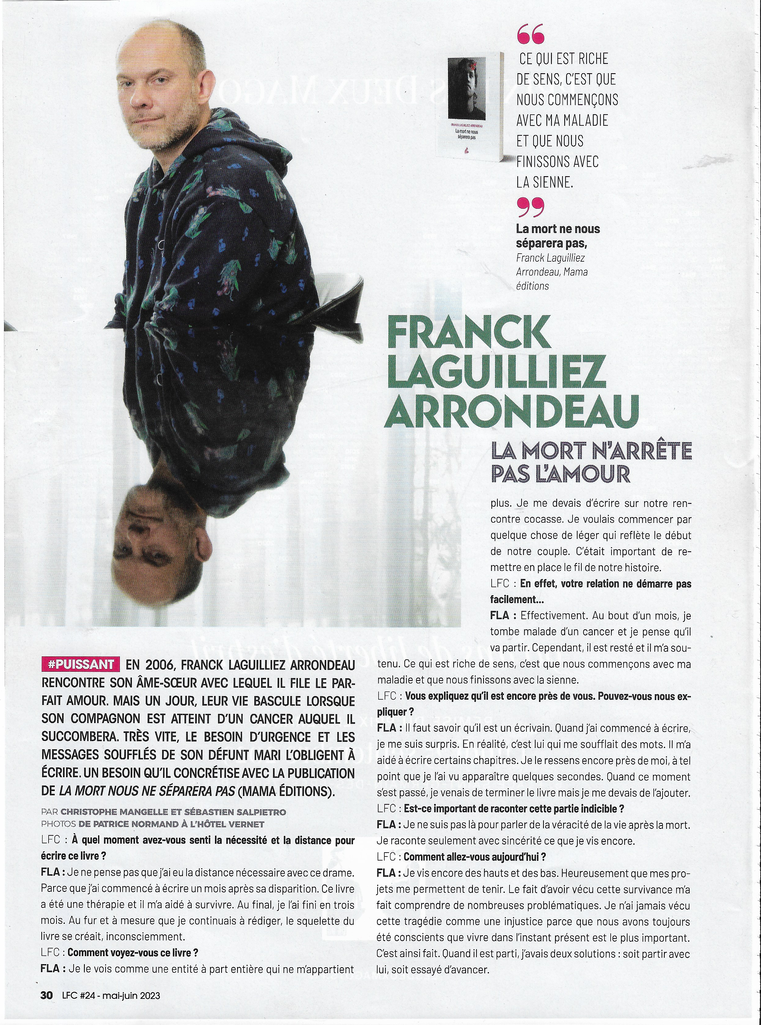 Ce livre m’a bouleversée. Franck Laguilliez Arrondeau a une manière déchirante de montrer que l’amour est tellement plus fort que la mort. Je comprends l’urgence de ce texte. Il parlera à beaucoup de gens en souffrance.