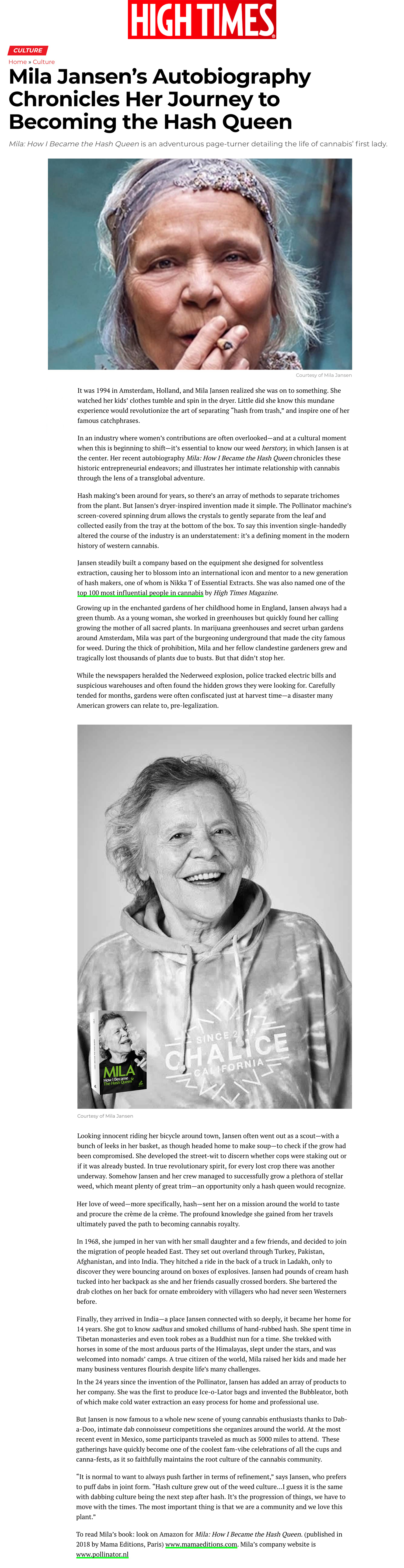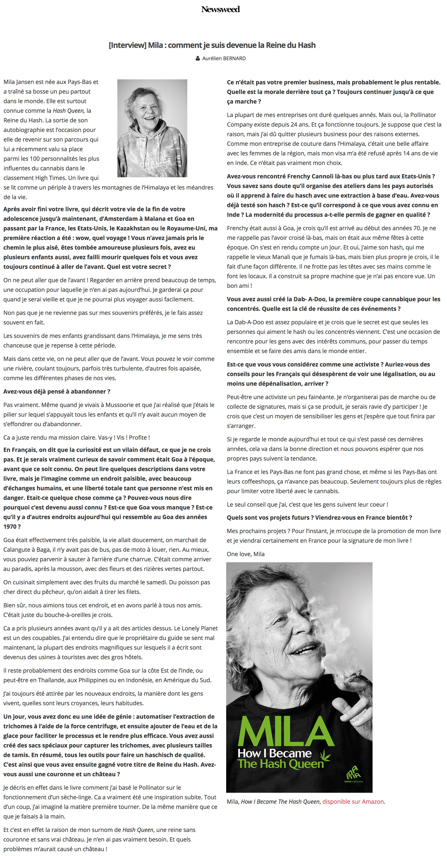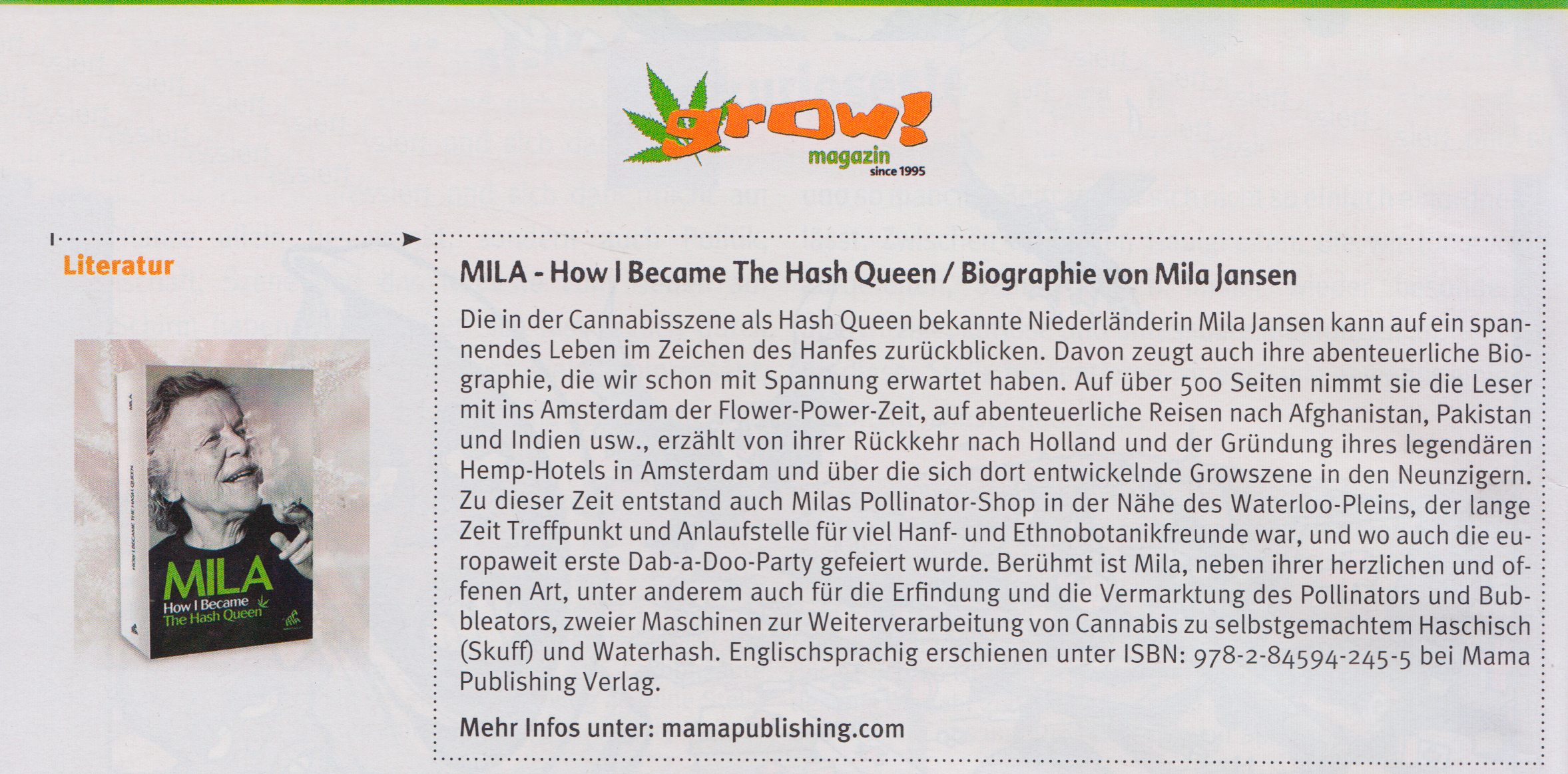 Die bewegte Biografie von Mila, der [Queen of Hash], ist hoch interessant zu lesen.