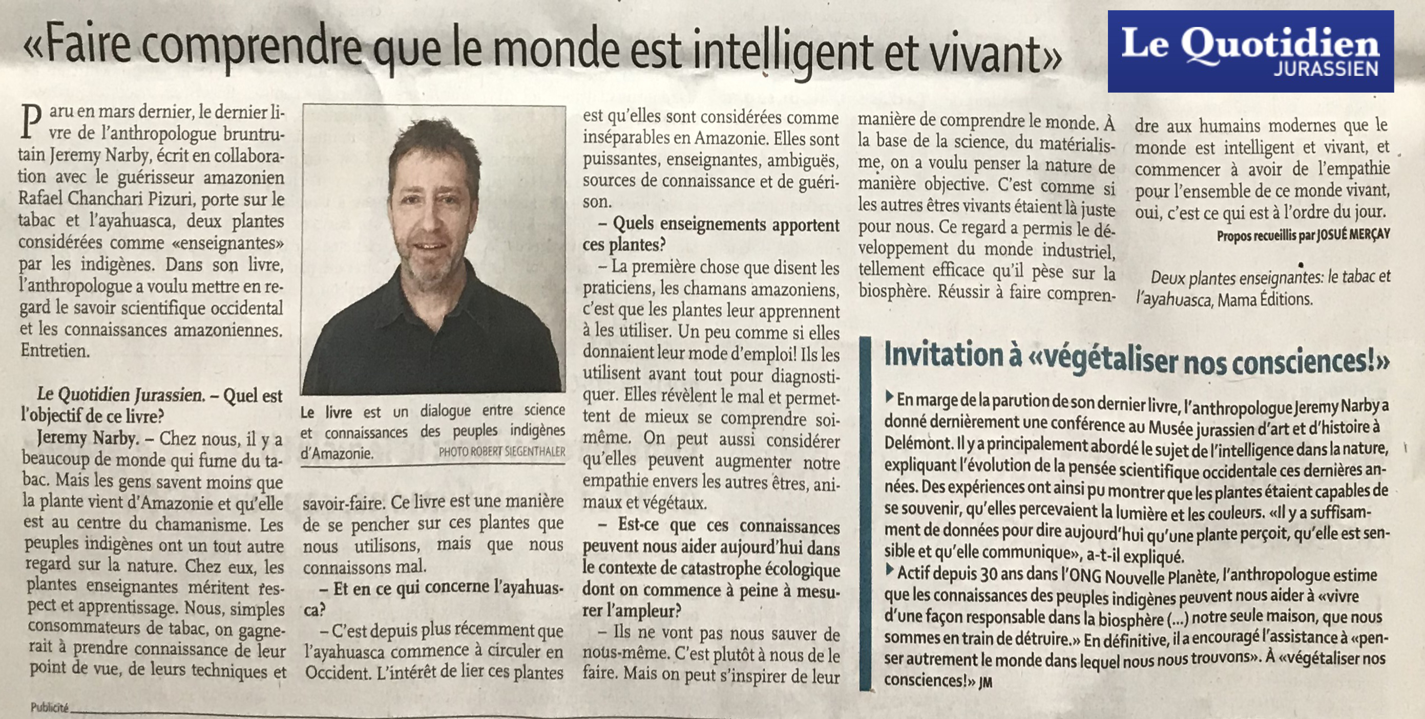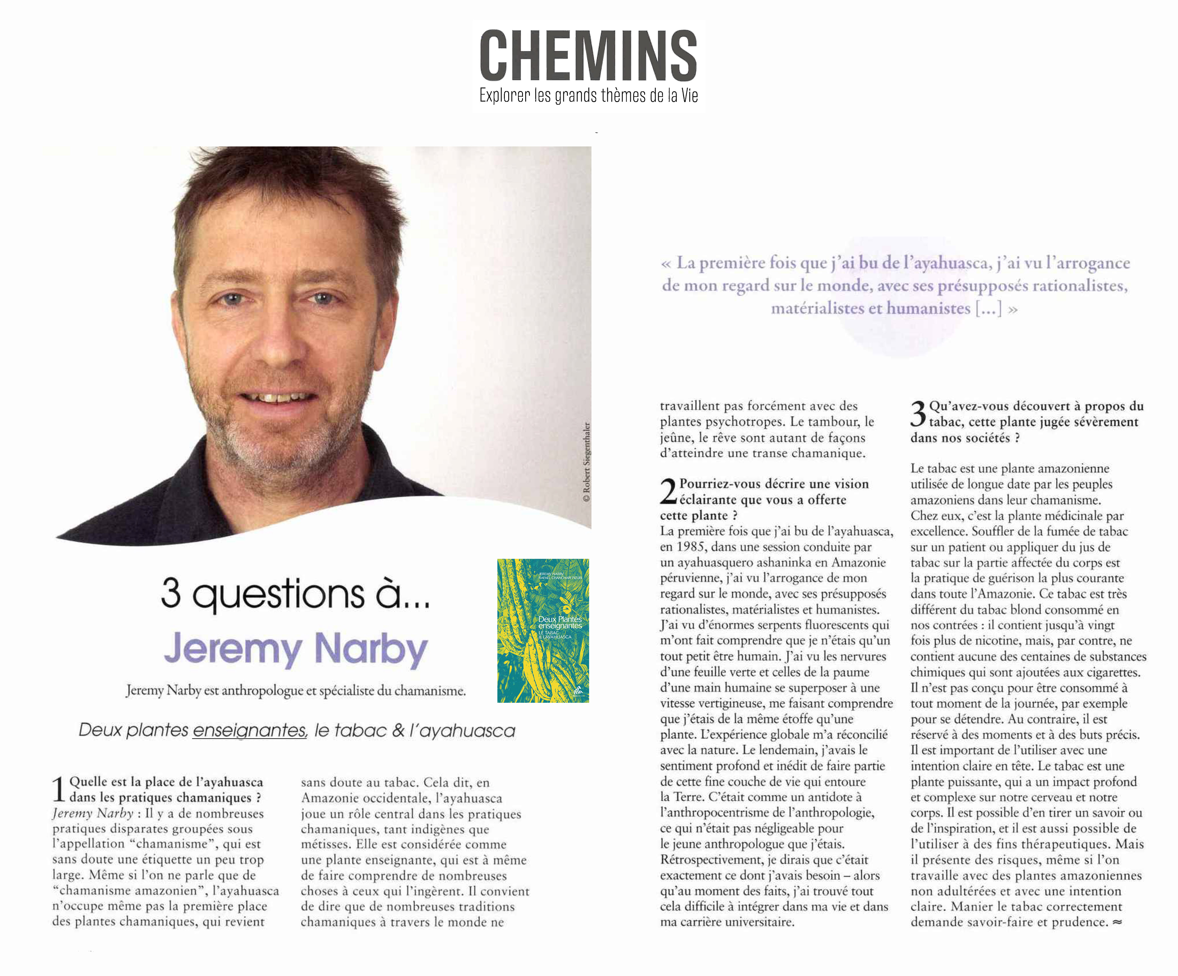3 questions à Jeremy Narby