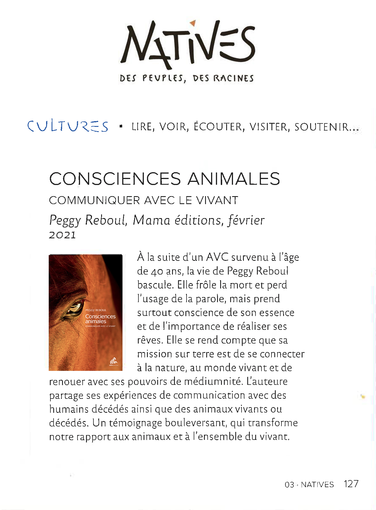 Peggy Reboul partage dans ce livres ses expériences de communication subtile avec les animaux et les végétaux.