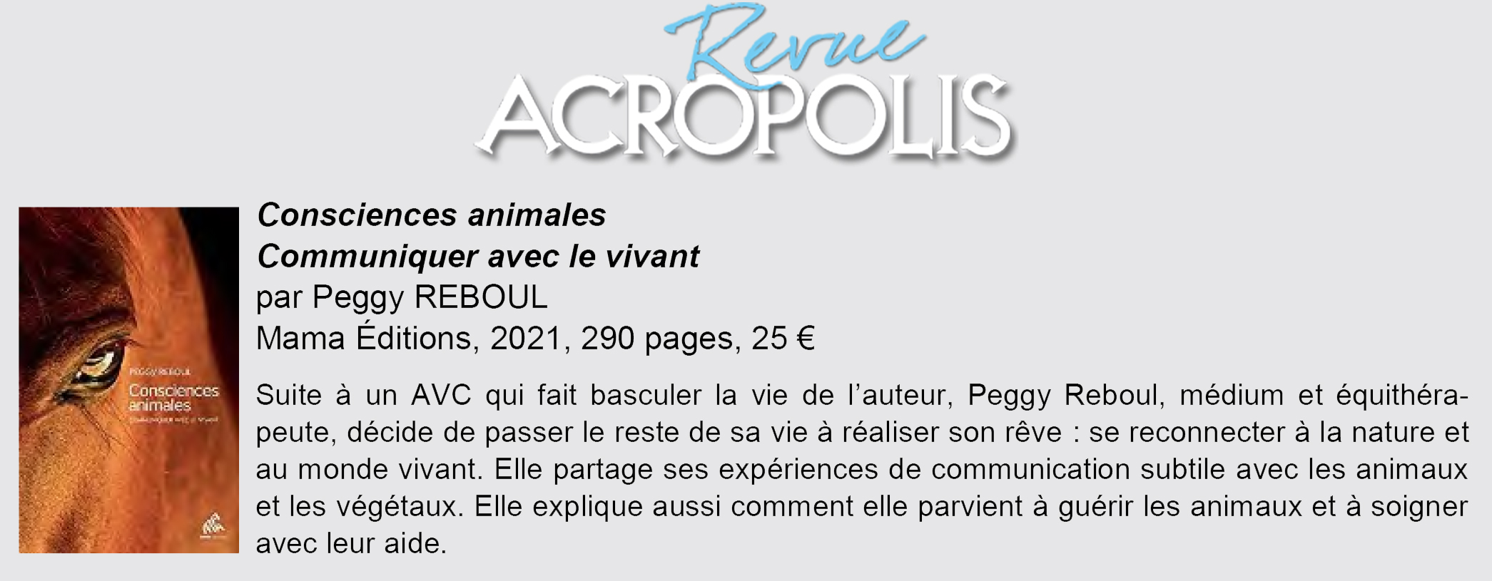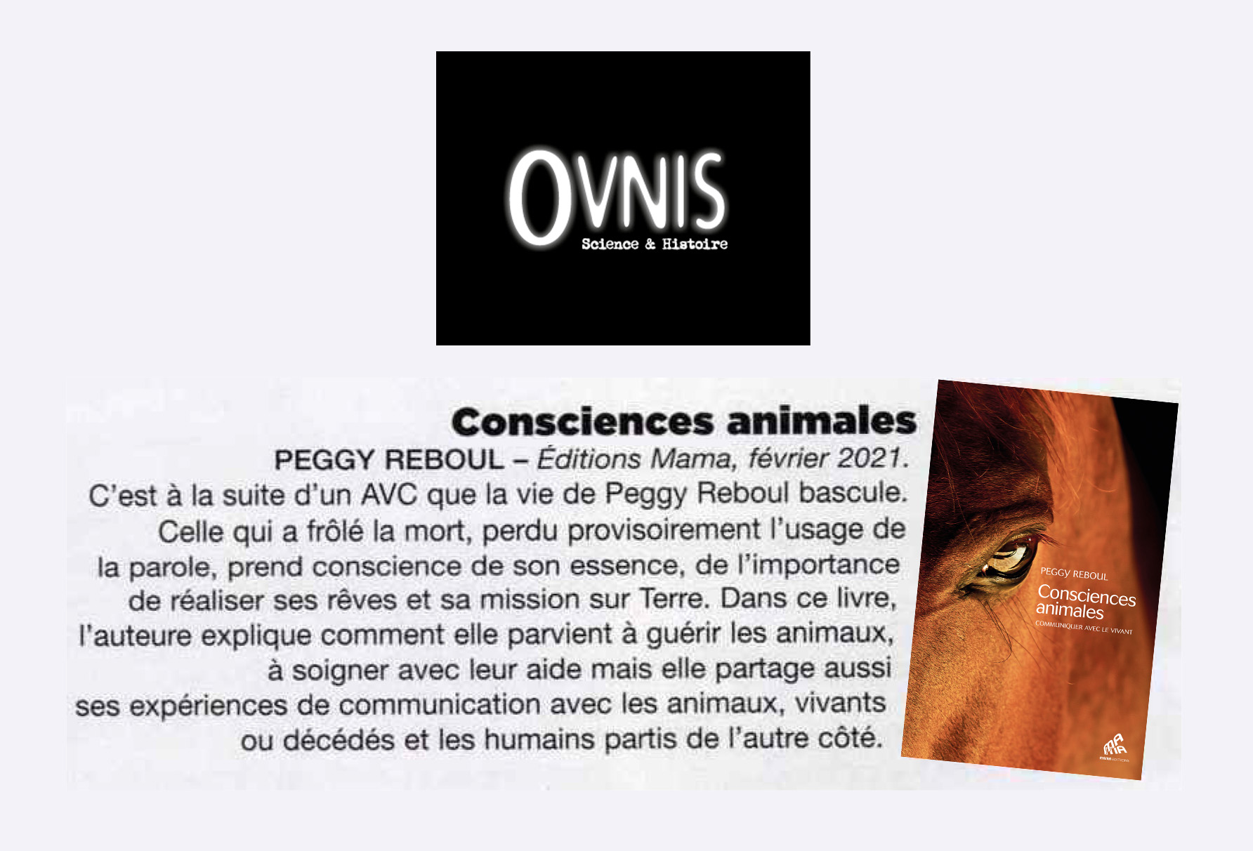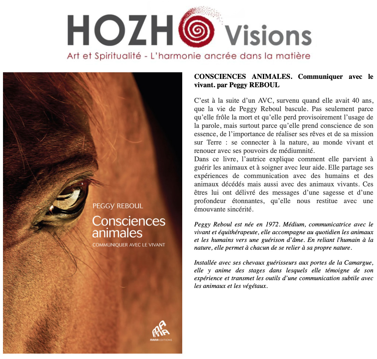 Peggy Reboul témoigne de son chemin de vie (…) se connecter à la nature, au monde vivant et renouer avec sa médiumnité pour aider les animaux, vivants et décédés, ici-bas.