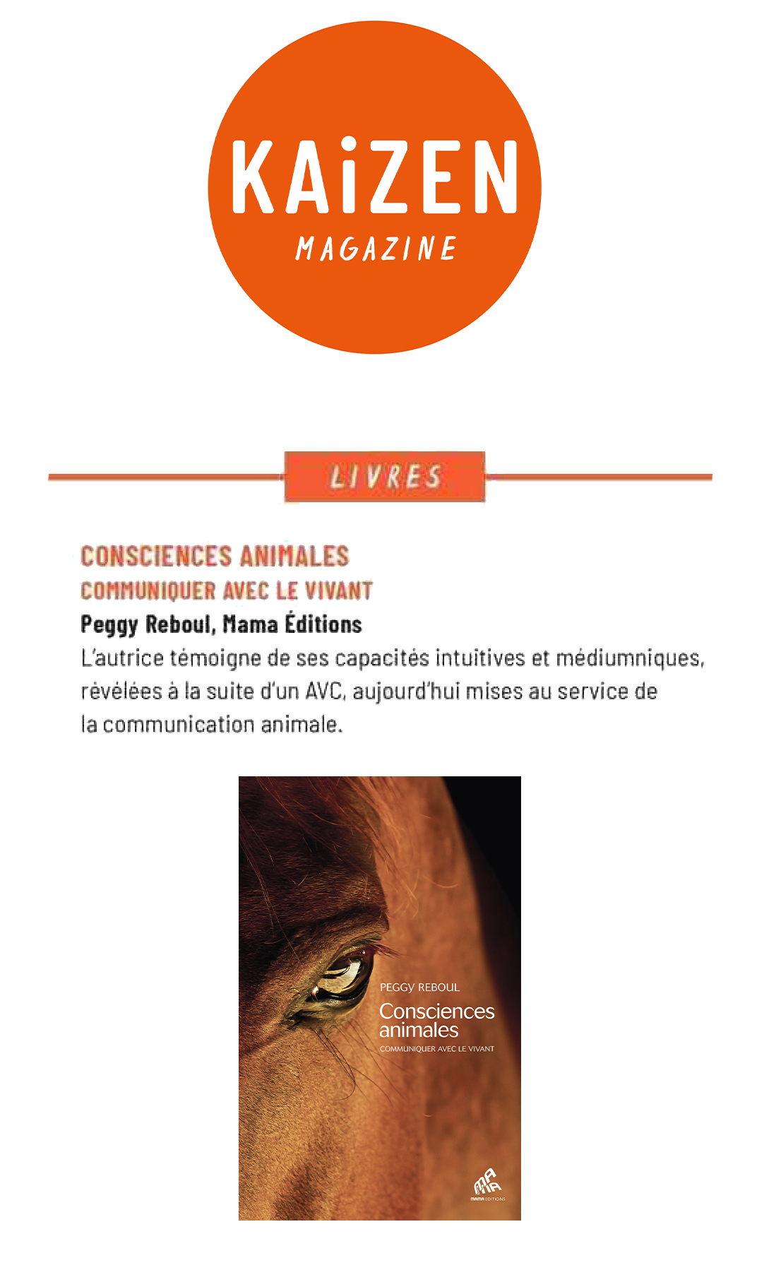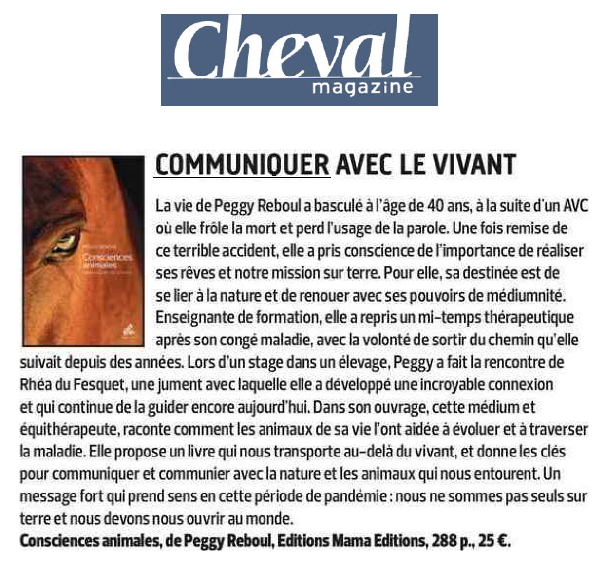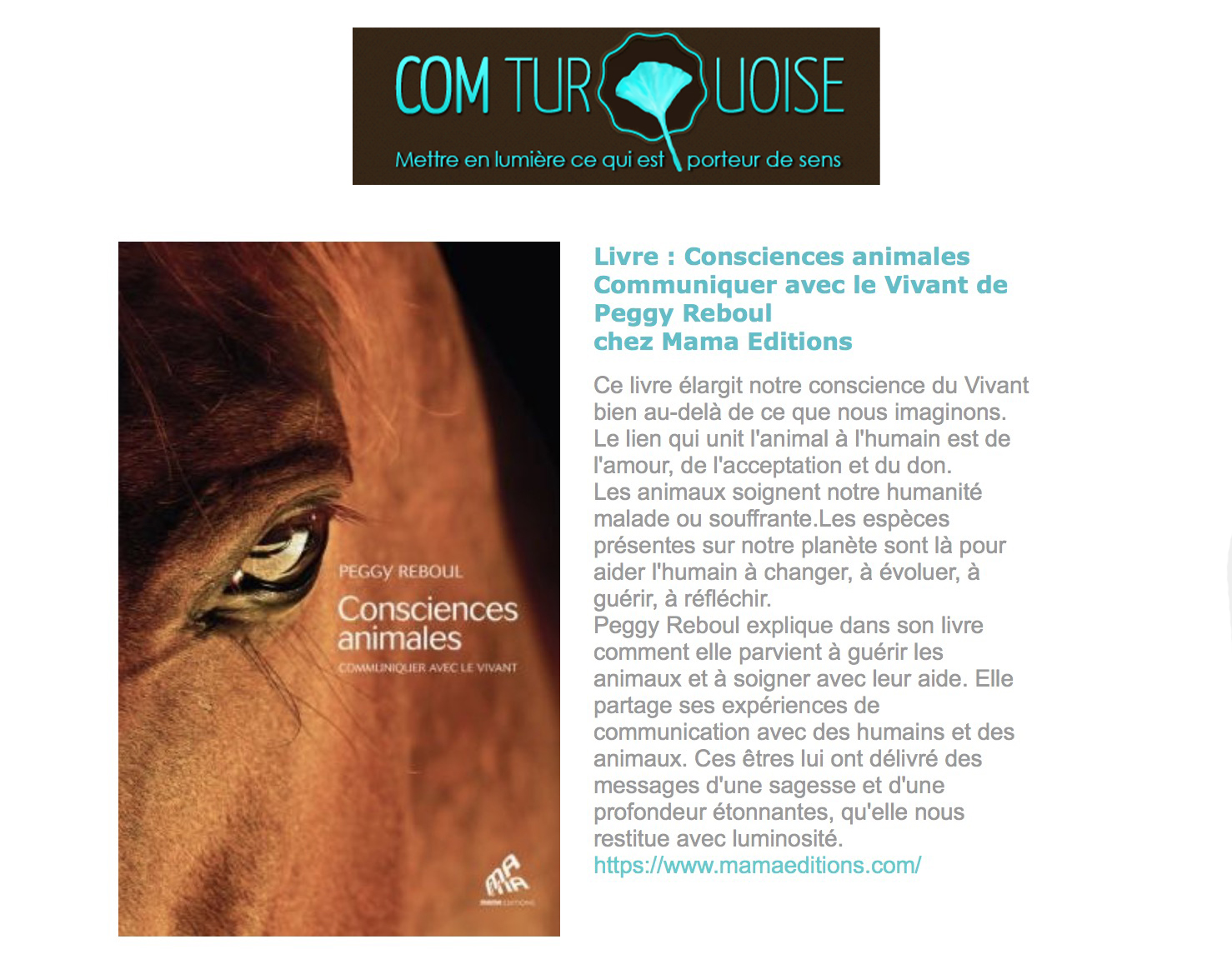 Peggy Reboul témoigne de son chemin de vie (…) se connecter à la nature, au monde vivant et renouer avec sa médiumnité pour aider les animaux, vivants et décédés, ici-bas.